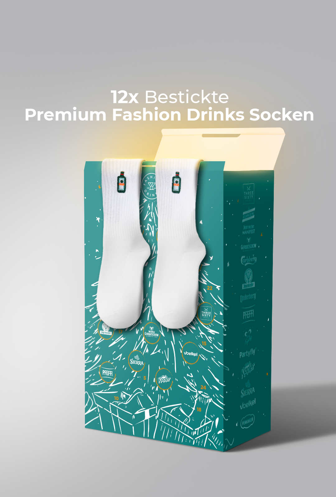 Vielfalt & Spannung: 15 renommierte Kooperationspartner aus Lifestyle, Genuss und Fashion sorgen für täglich neue Highlights. Von hochwertigen Produkten bis hin zu inspirierenden Markenideen – jeder Tag bringt einen besonderen Moment der Freude.Exklusive Premium-Socken: Zusätzlich enthält der Kalender 12 Paar Premium-Socken von Fashion Drinks, die mit außergewöhnlichen Designs und höchstem Tragekomfort überzeugen. Ein Must-have für alle, die Stil und Qualität schätzen.
