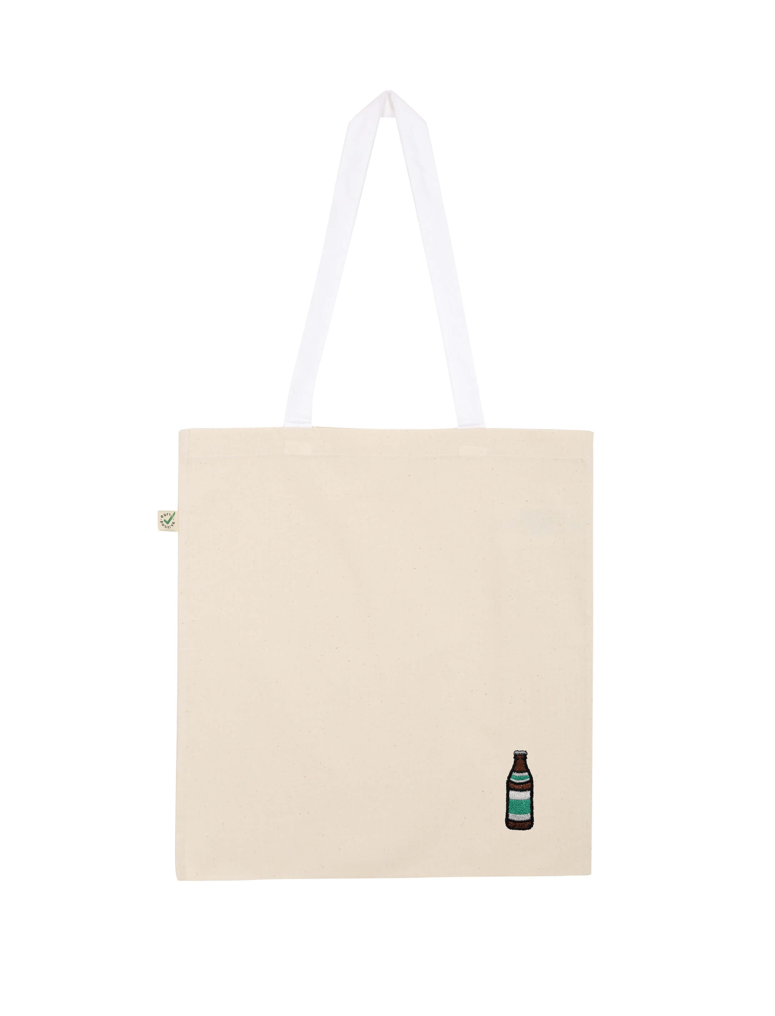 Bestickte, fair produzierte Bio-Baumwoll-Tragetasche im Helles Design.
