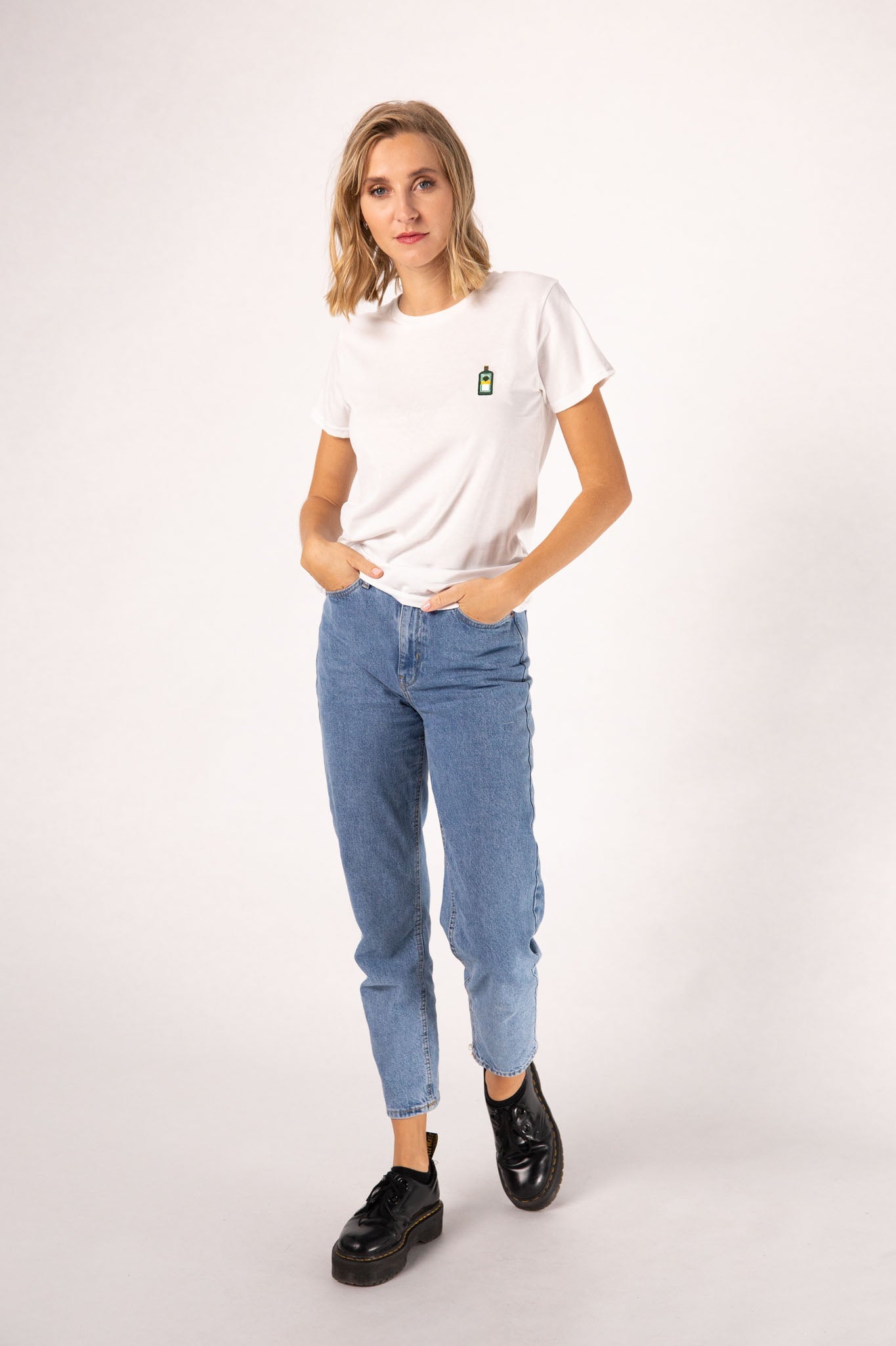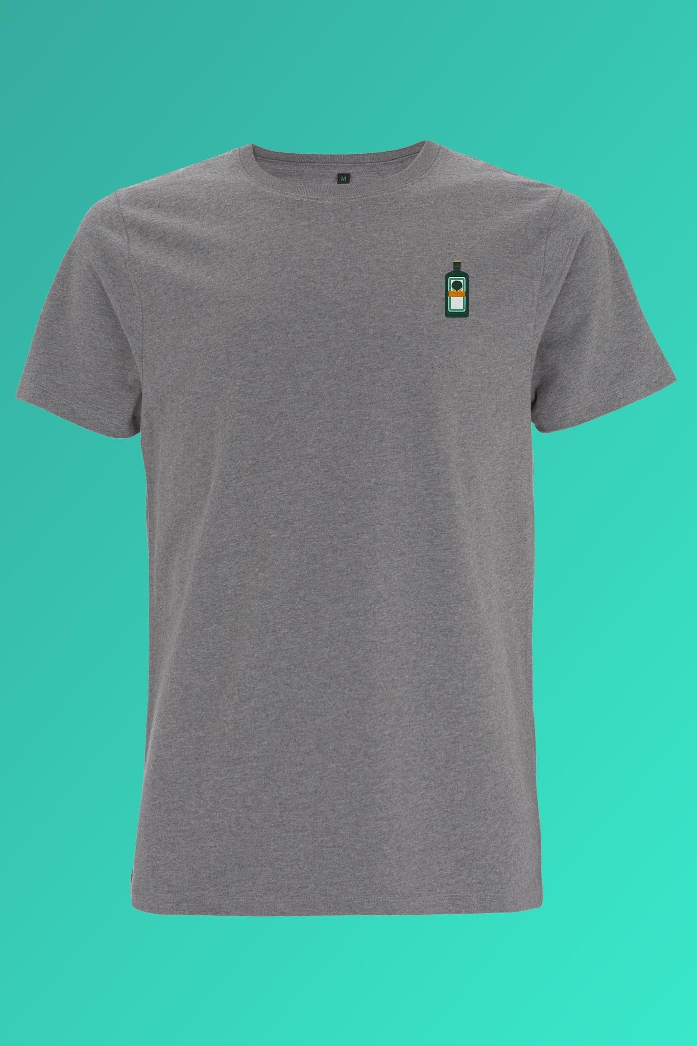 Super hochwertiges Bio Baumwoll Unisex T-Shirt mit schwerem Stoff (190gsm) und der offiziellen gestickten Jägermeister Flasche