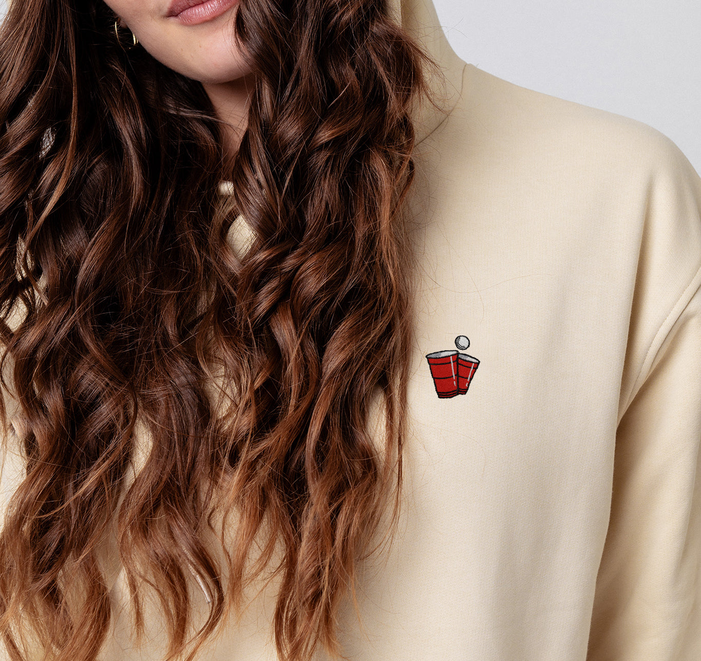 Die Stickerei auf unseren Fashion Drinks Produkten bleibt auch nach mehrmaligem Waschen in einwandfreier Form. Wir verwenden eine präzise, langsame Sticktechnik auf hochwertigen Industriemaschinen, die speziell für feine und detaillierte Stickarbeiten entwickelt wurden. Diese Maschinen sorgen dafür, dass die Stickerei stabil und fest in das Textil eingearbeitet wird. Jeder Schritt der Produktion wird in unserer eigenen Stickerei in Bayern überwacht, um höchste Qualität zu gewährleisten.