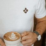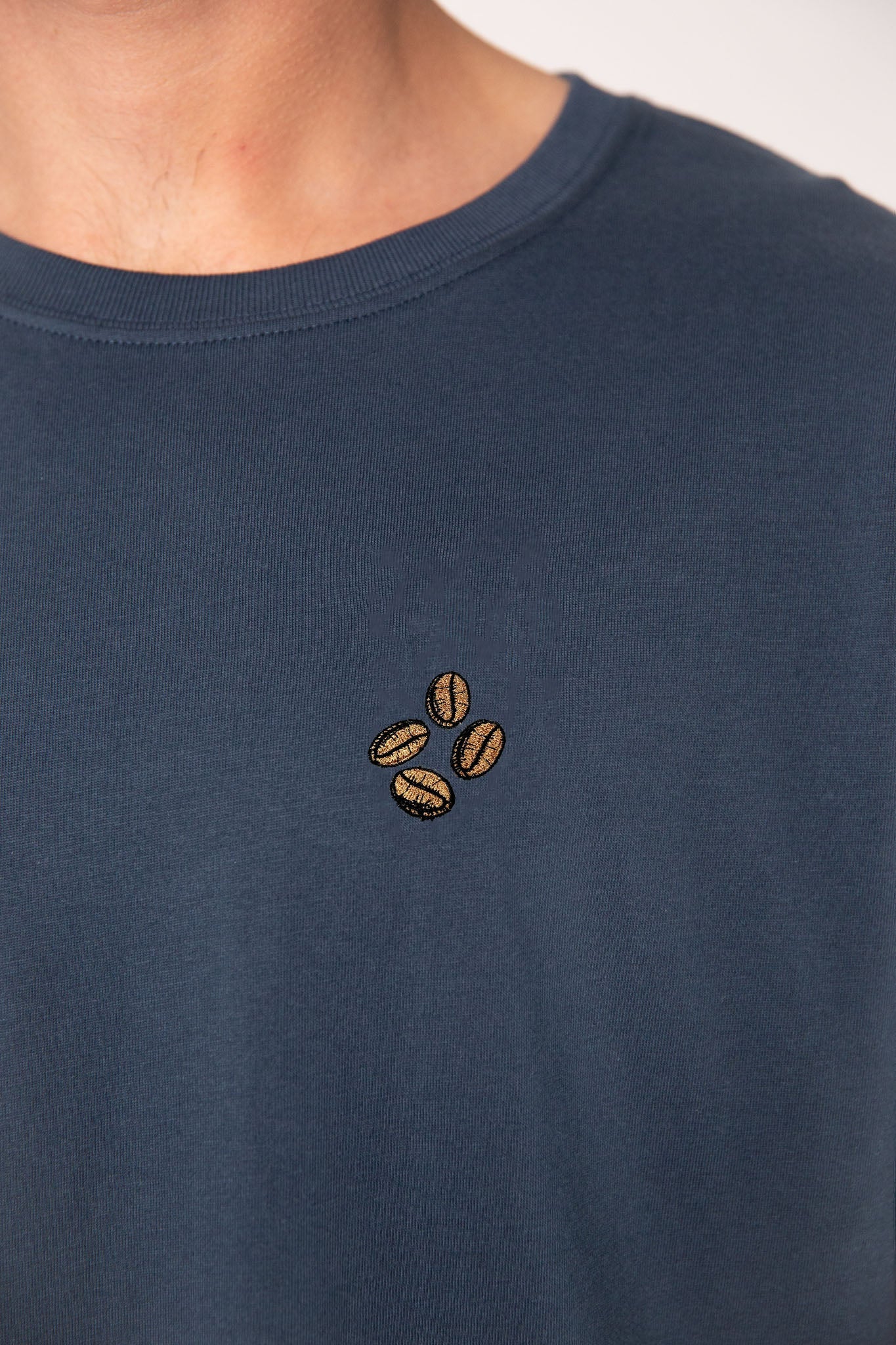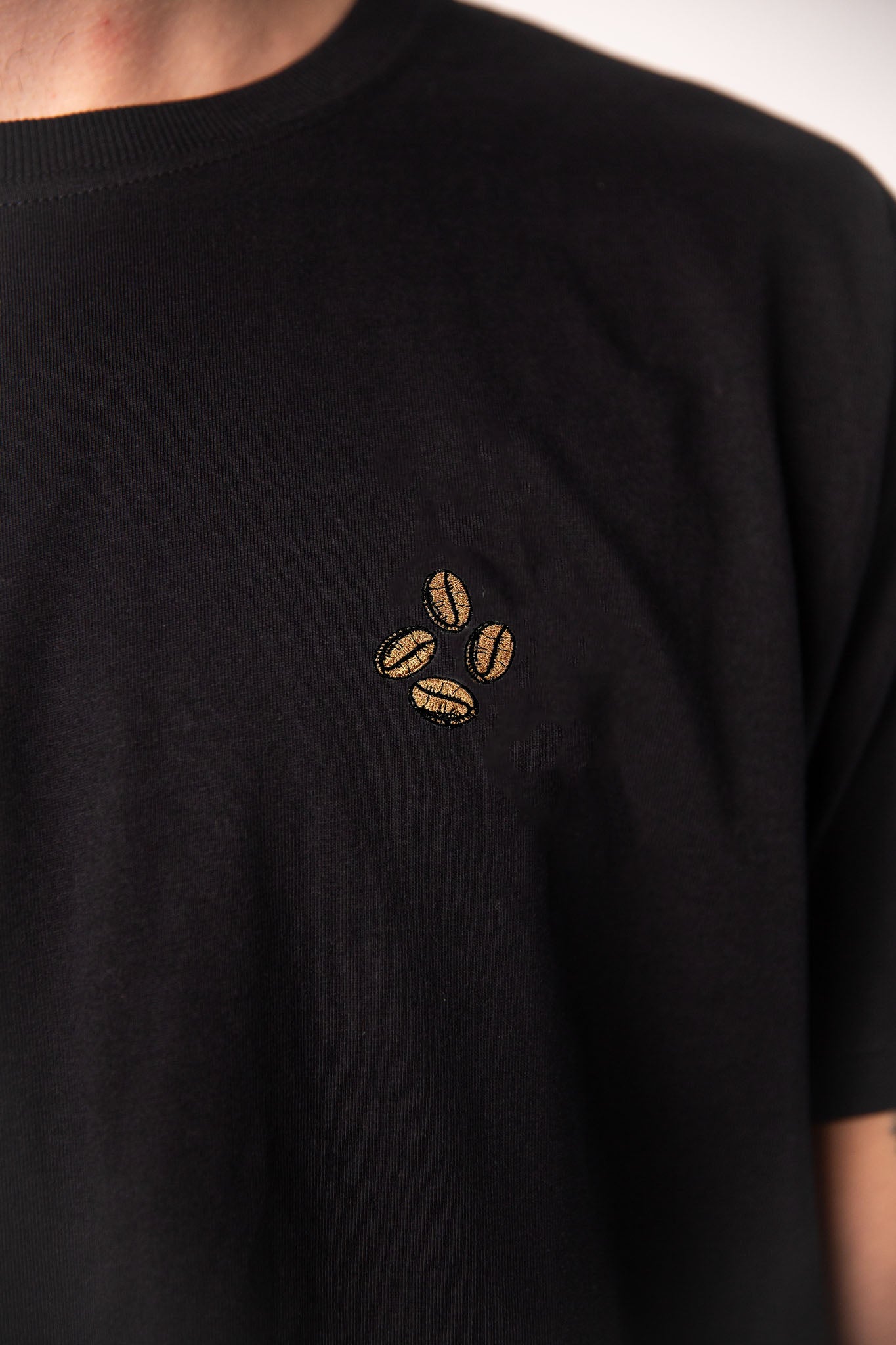 Super hochwertiges Bio Baumwoll Unisex T-Shirt mit schwerem Stoff (190gsm) und gesticktem Coffe Beans Design