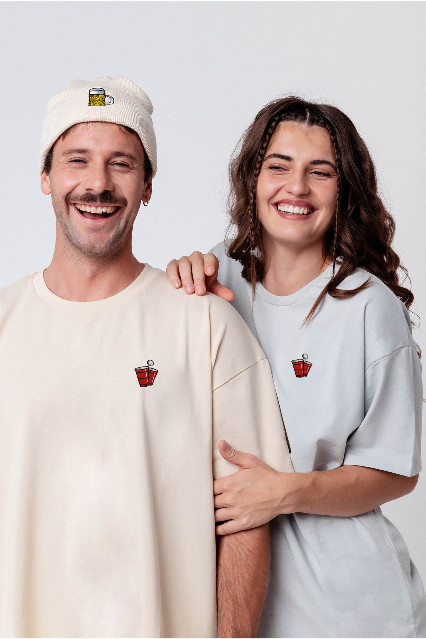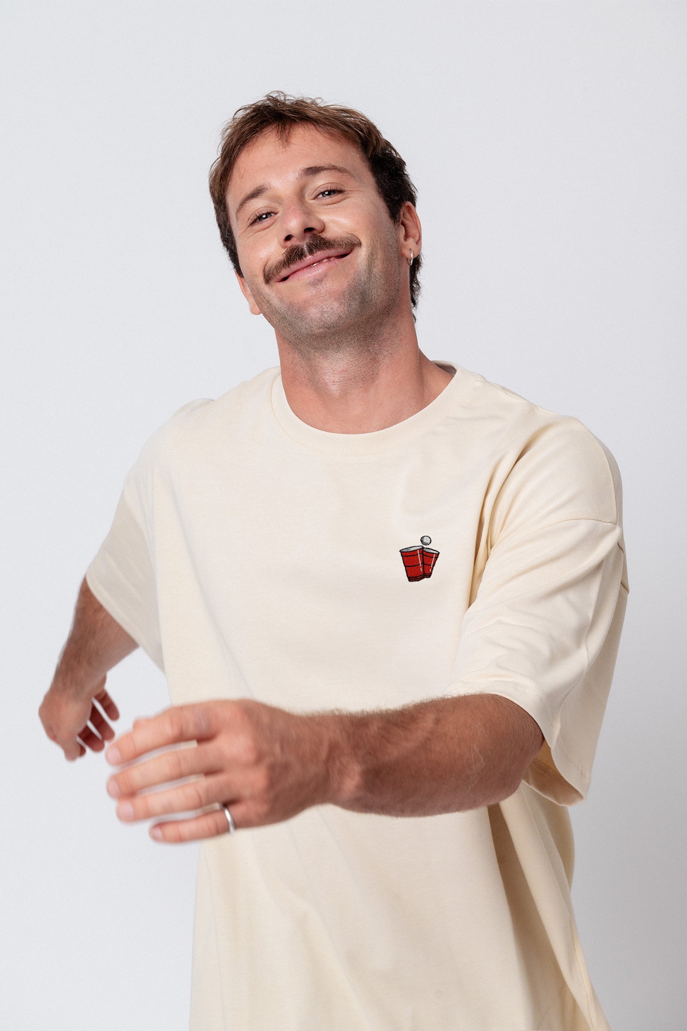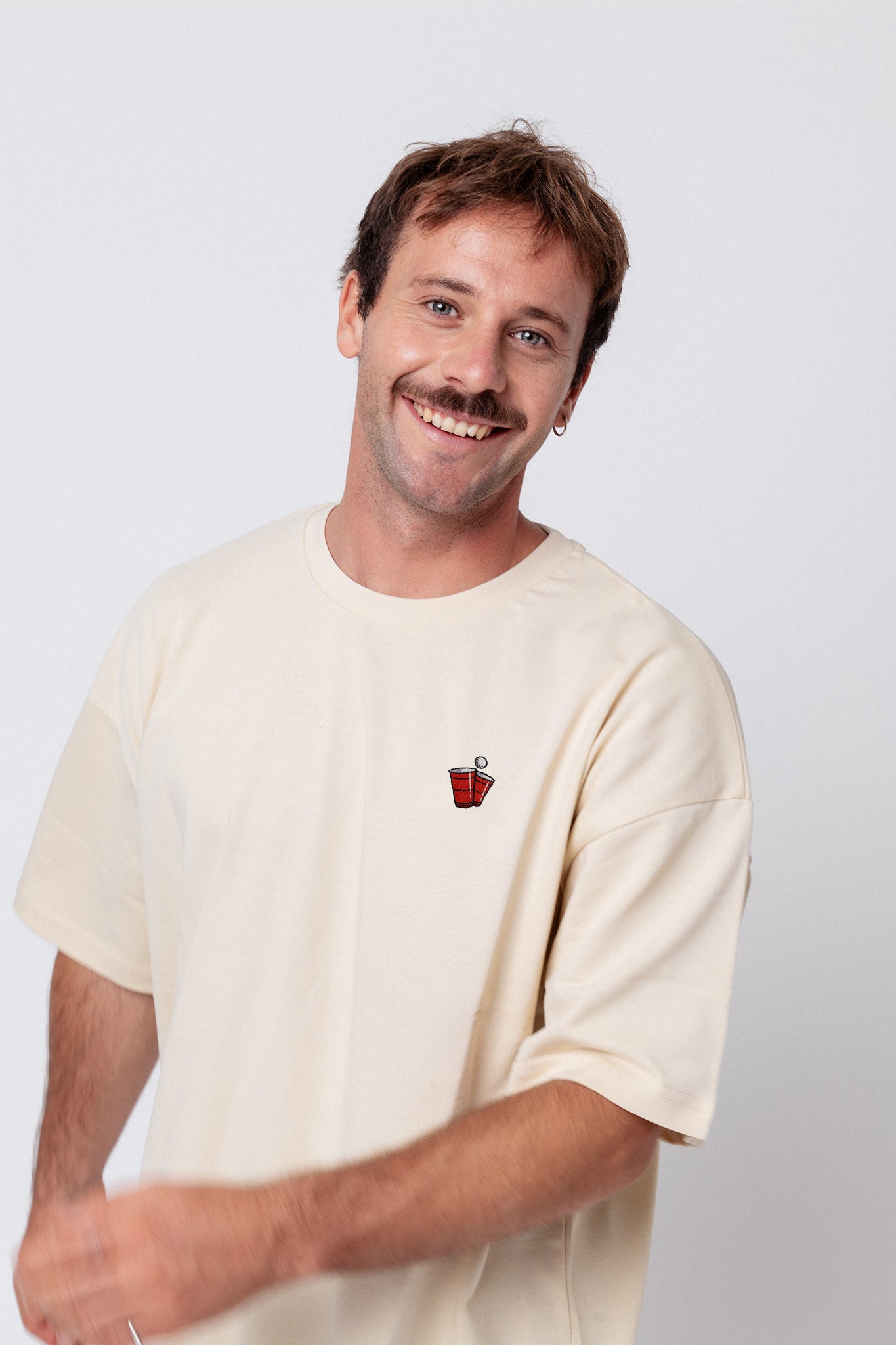 Heavy Oversized Bio Baumwoll T-Shirt mit extra schwerem Stoff (230gsm) und gesticktem Beerpong Design