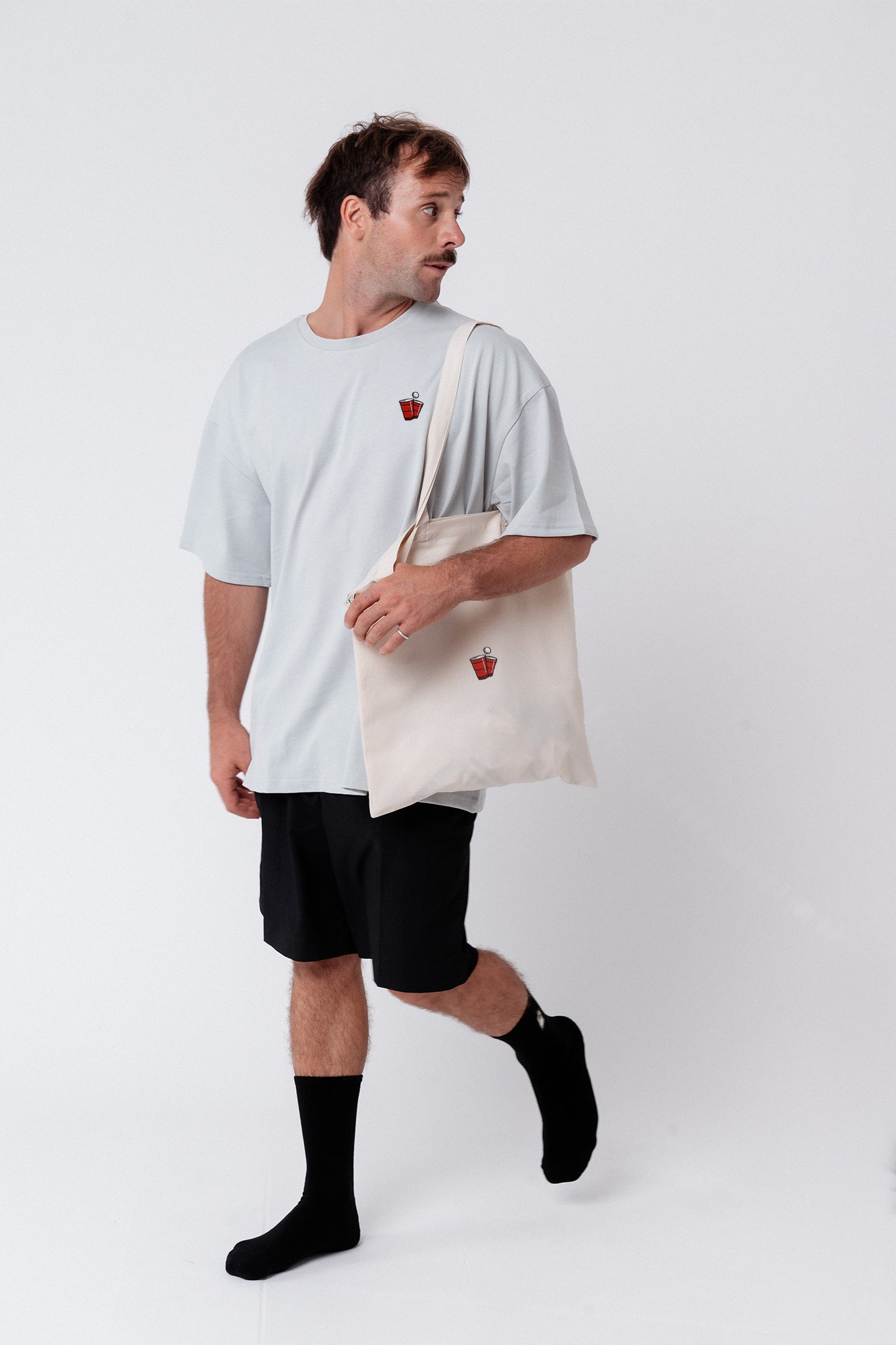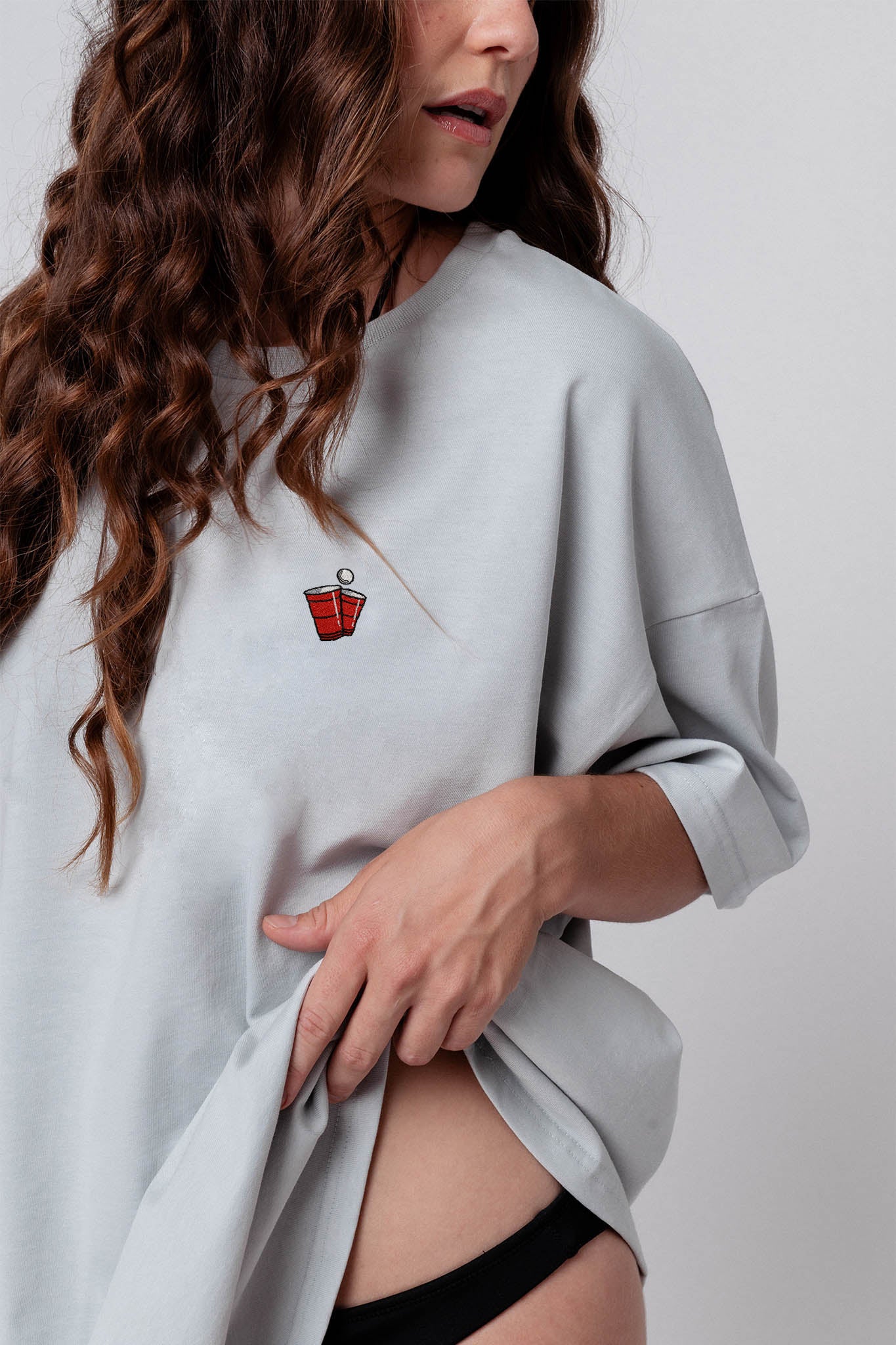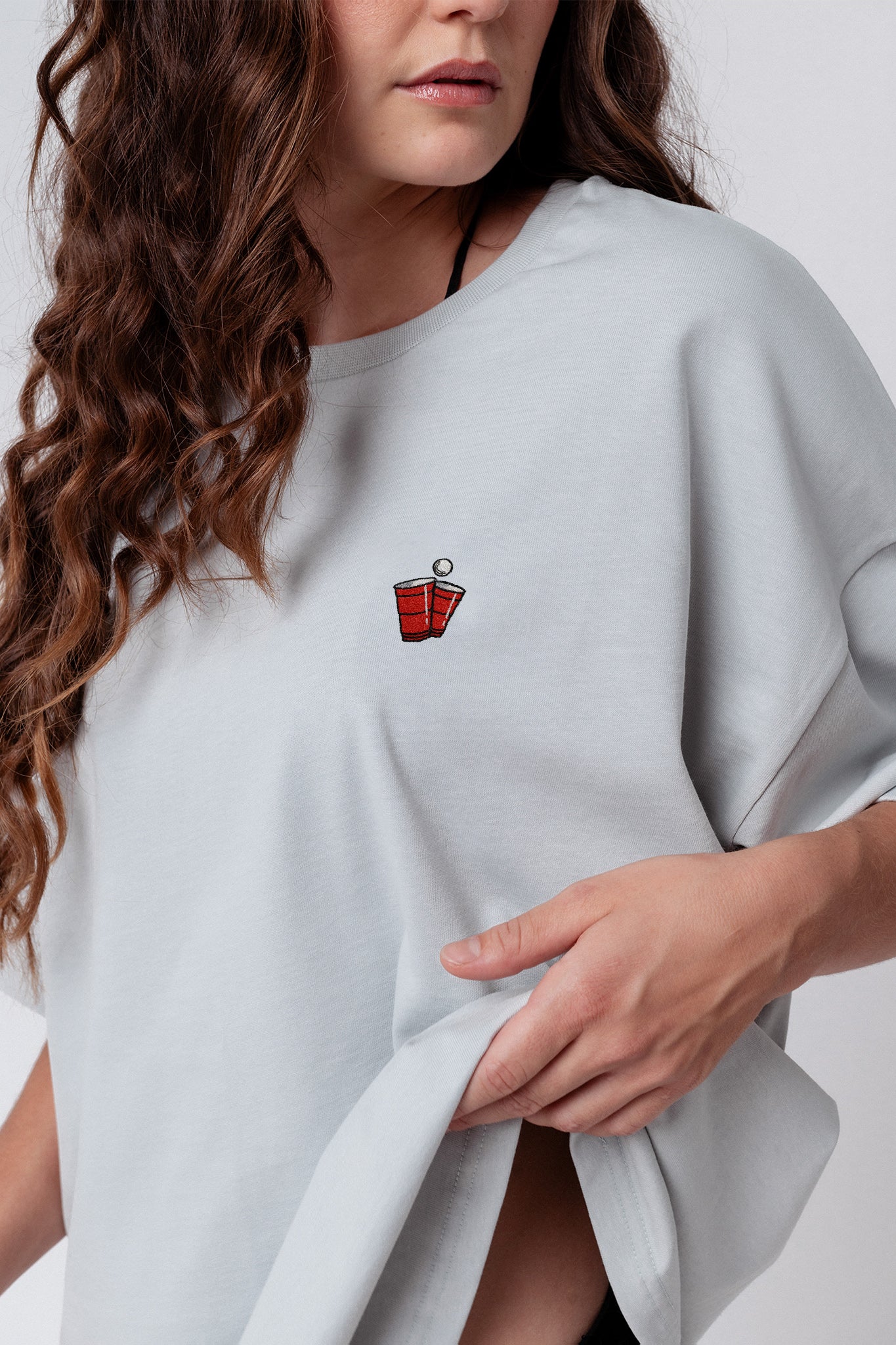 Heavy Oversized Bio Baumwoll T-Shirt mit extra schwerem Stoff (230gsm) und gesticktem Beerpong Design
