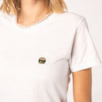 Besticktes Bio Baumwoll Frauen T-Shirt mit extrem angenehmen Stoff (155gsm) und gesticktem Burger Design