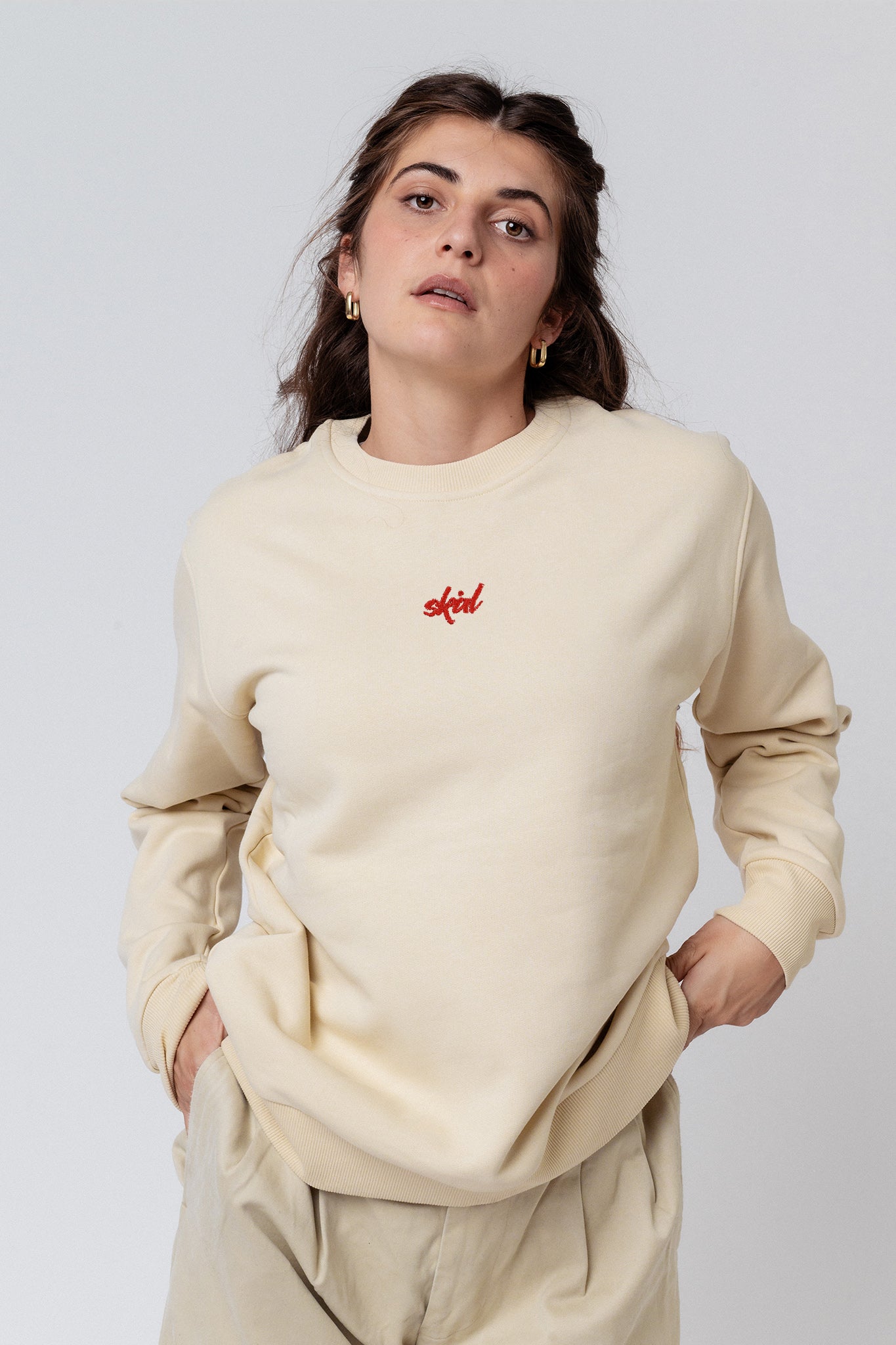 Erfahre mehr überunsere bestickten Bio Sweatshirt