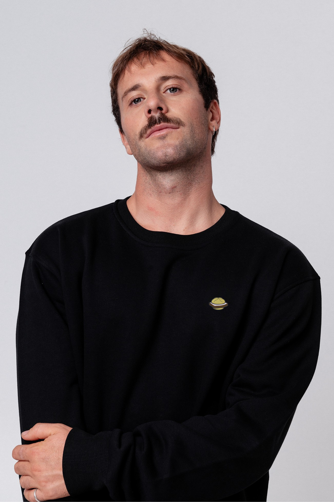 Bestickter Bio Baumwoll Unisex Pullover mit schwerem Stoff (320gsm) und gesticktem Leberkassemmel Design
