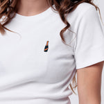 Super hochwertiges Bio Baumwoll Cropped T-Shirt mir der offiziell gestickten Mionetto Prosecco Flasche in drei verschiedenen Schnitt-Varianten: Ripped, Regular & Oversized