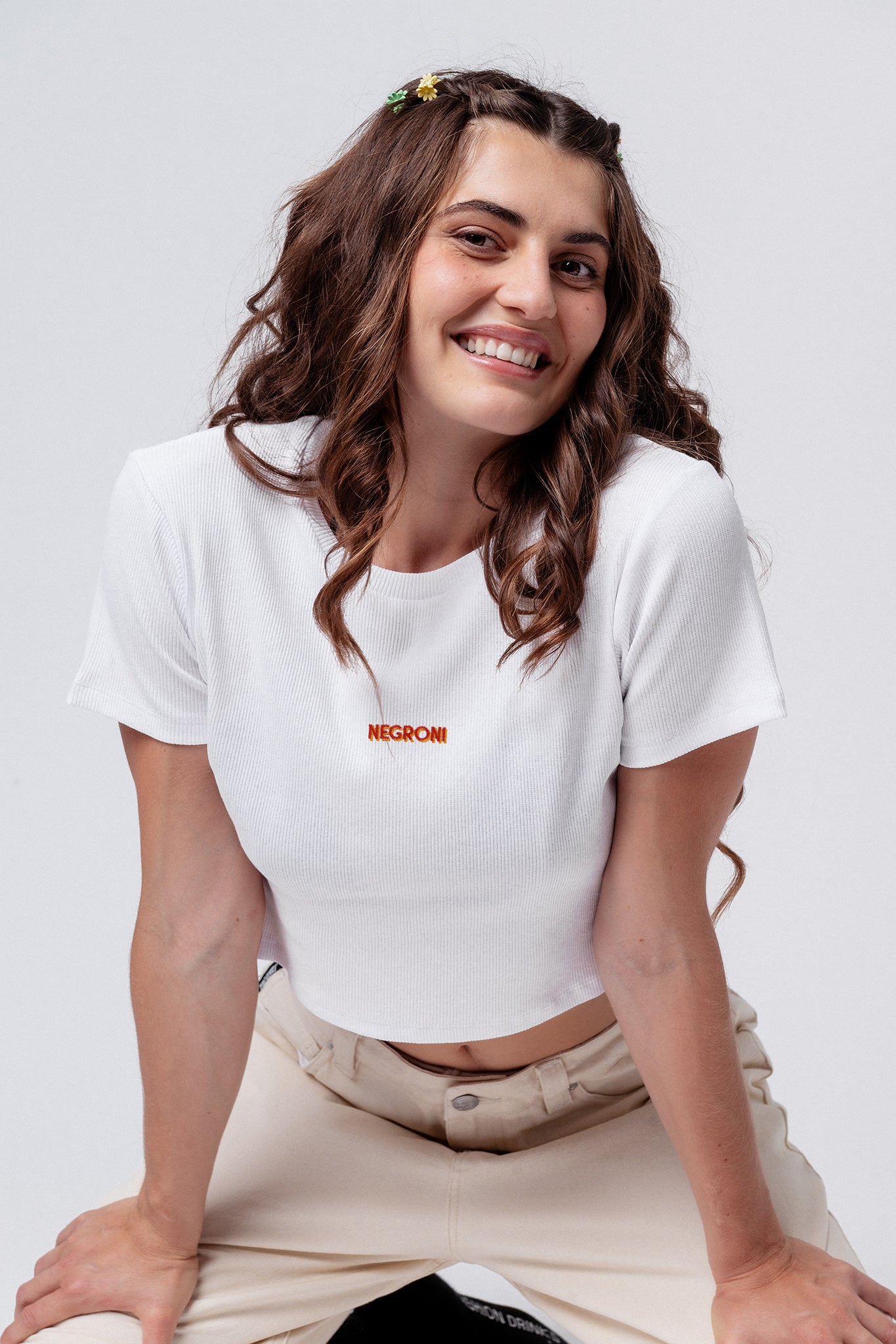 Negroni Signature | Besticktes Bio Baumwoll Cropped T-Shirt