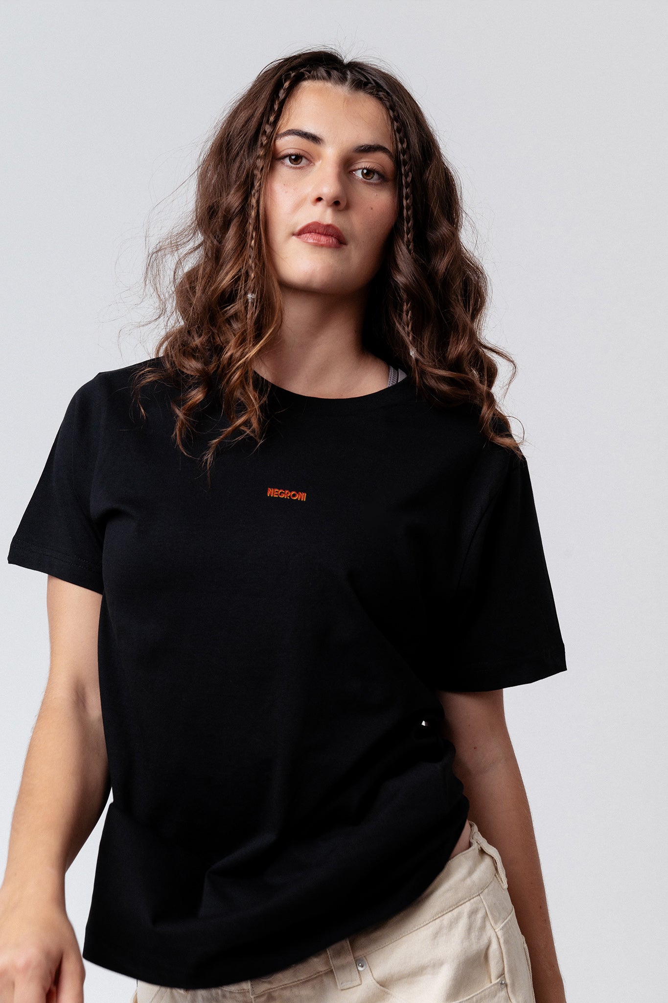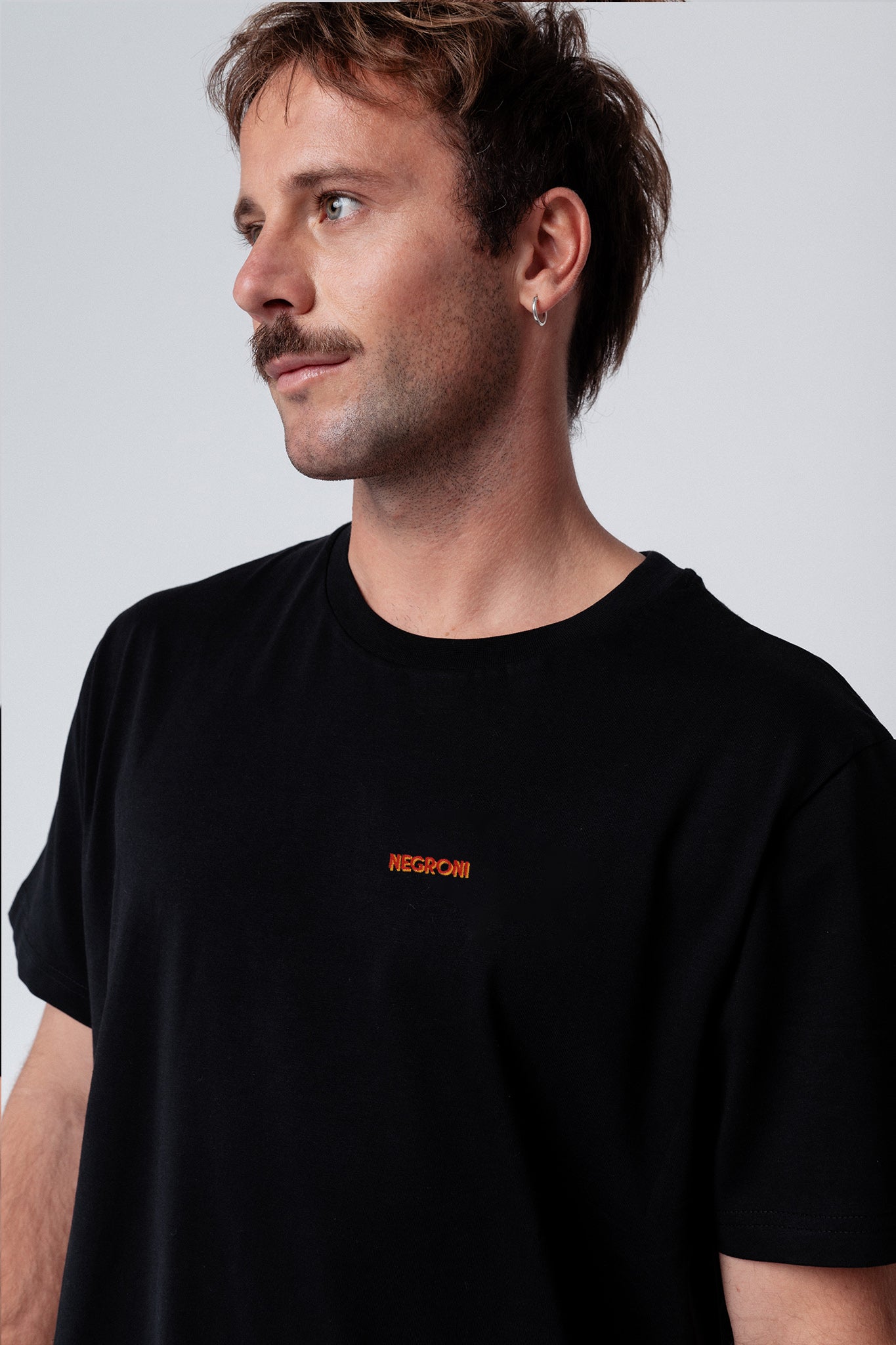 Besticktes Bio Baumwoll Unisex T-Shirt mit schwerem Stoff (190gsm) und gesticktem Negroni Signature Design.