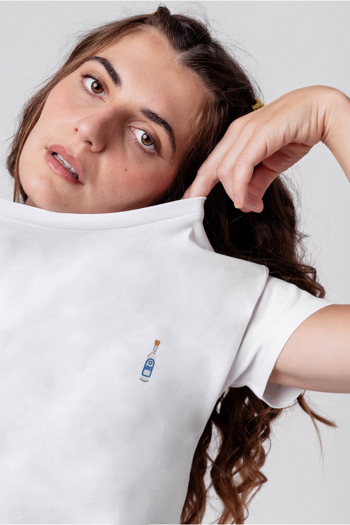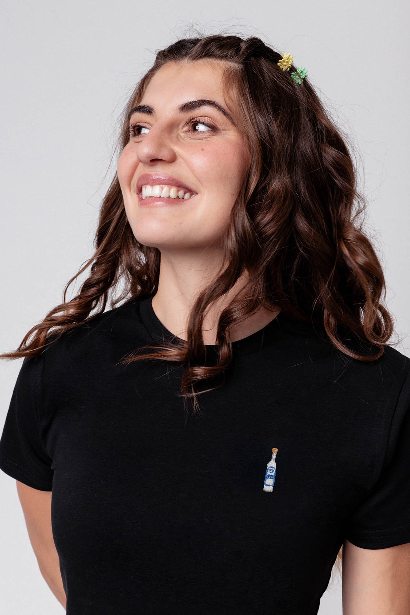 Besticktes Bio Baumwoll Frauen T-Shirt mit extrem angenehmen Stoff (155gsm) und gesticktem Ouzo Design