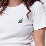 Super hochwertiges Bio Baumwoll Cropped T-Shirt mir dem gestickten Pfirsich Eistee Design in drei verschiedenen Schnitt-Varianten: Ripped, Regular & Oversized