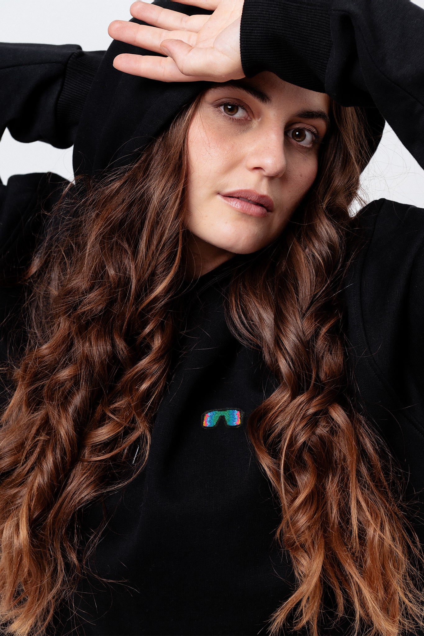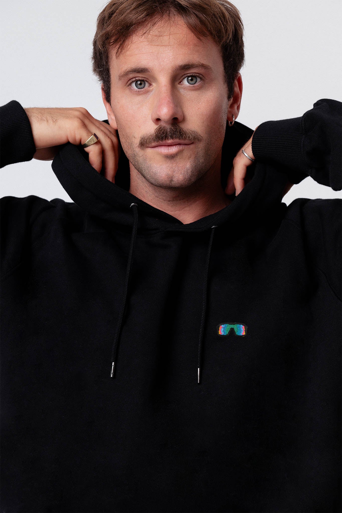Super hochwertiger Bio Baumwoll Unisex Hoodie mit schwerem Stoff (350gsm) und gesticktem schnelle Brille Design