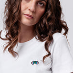 Super hochwertiges Bio Baumwoll Cropped T-Shirt mit gesticktem schnelle Brille Design in drei verschiedenen Schnitt-Varianten: Ripped, Regular & Oversized