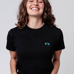 Besticktes Bio Baumwoll Frauen T-Shirt mit extrem angenehmen Stoff (155gsm) und gesticktem schnelle Brille Design