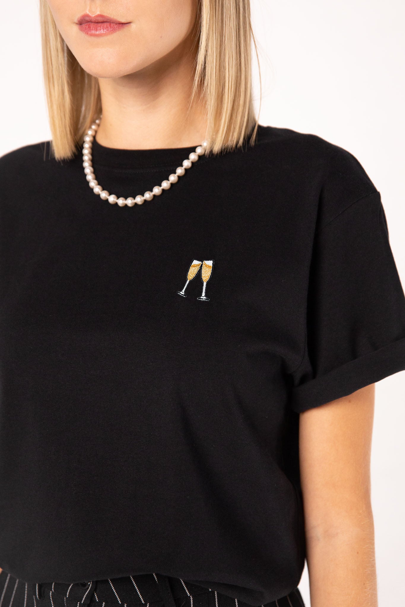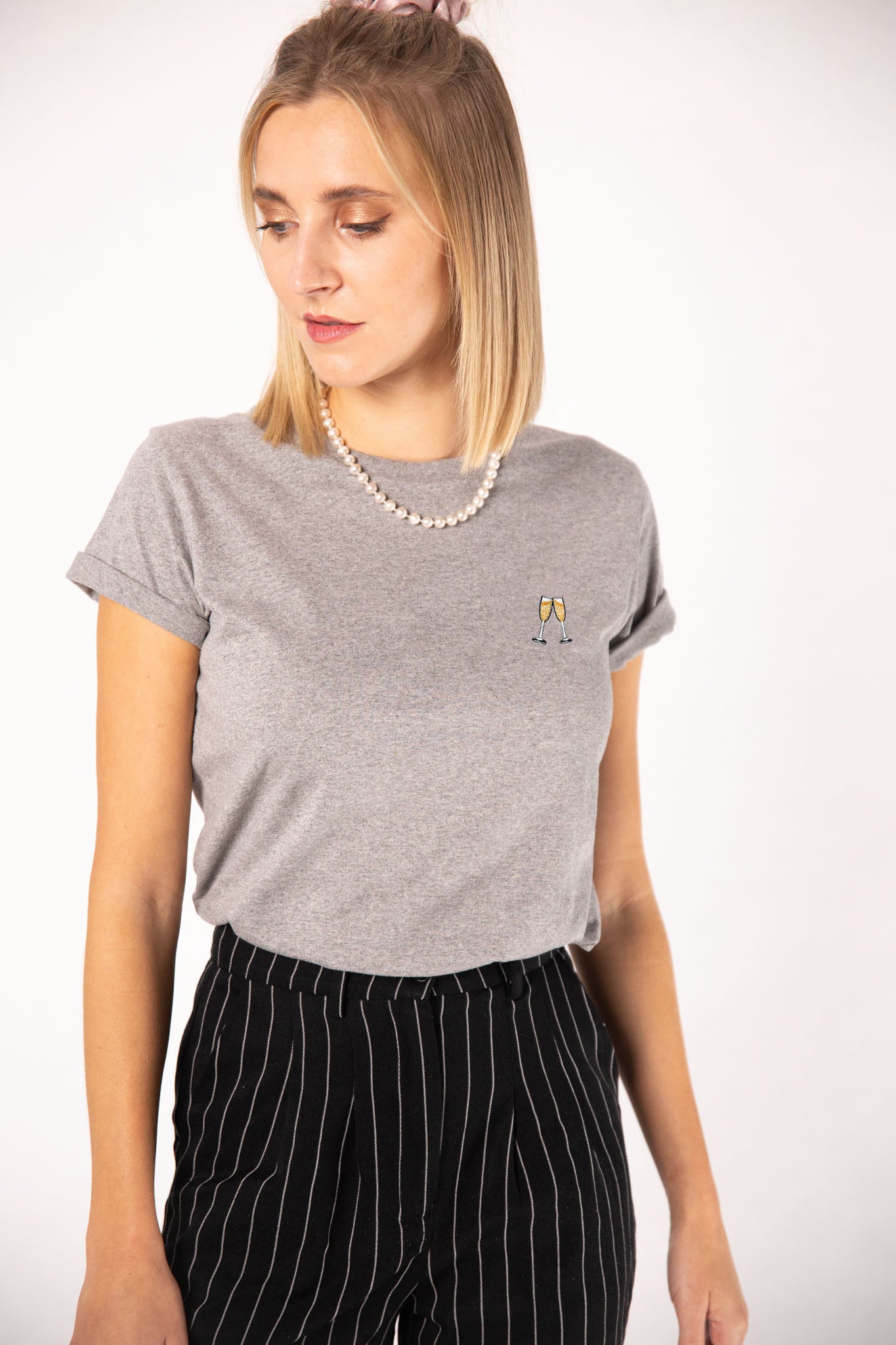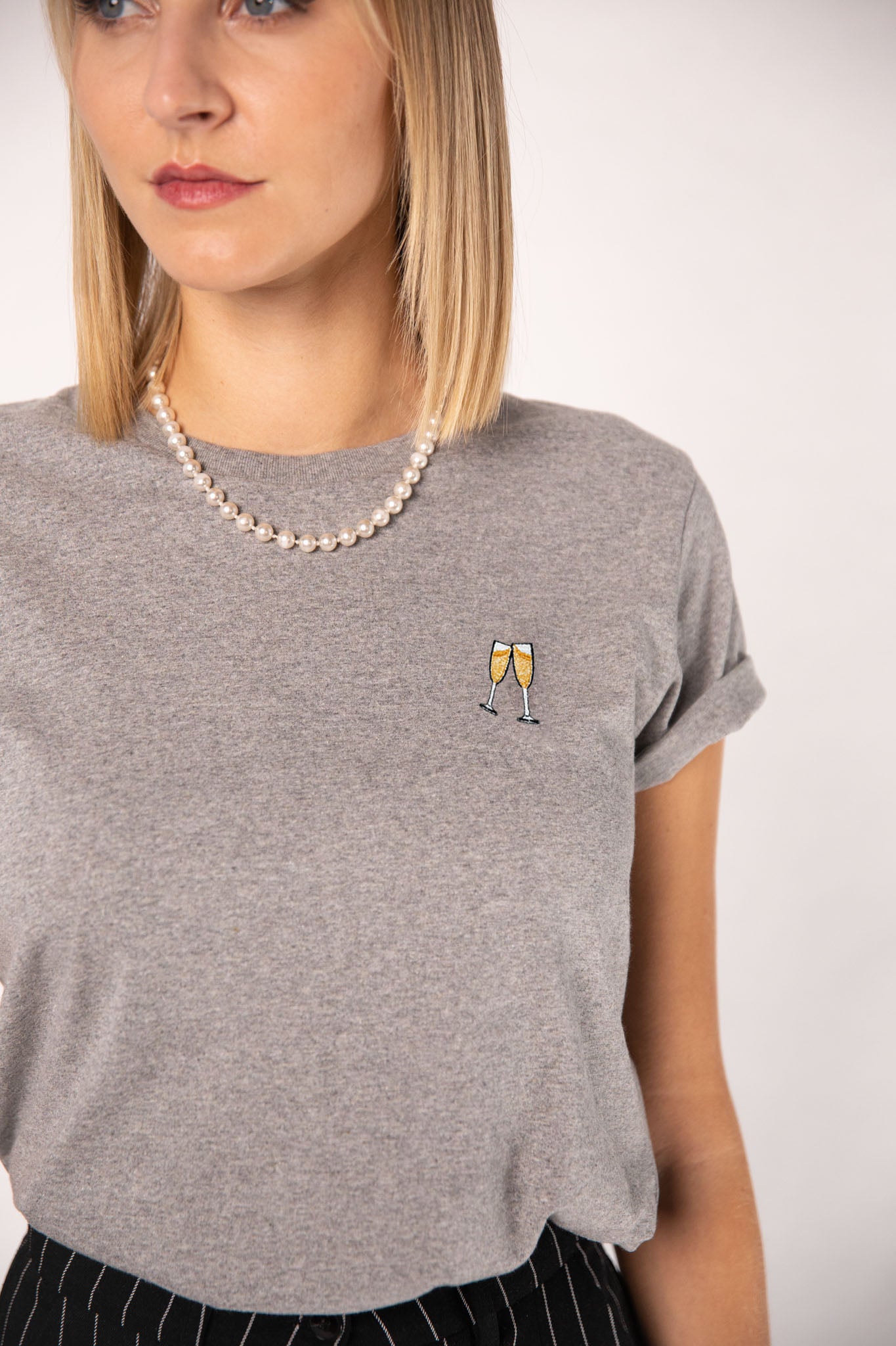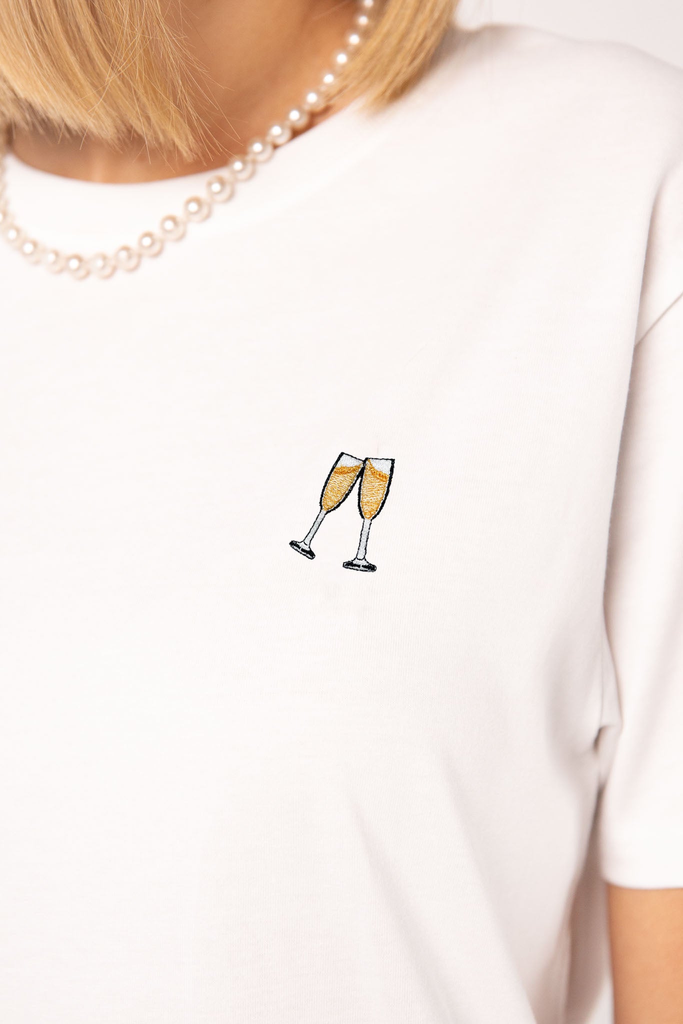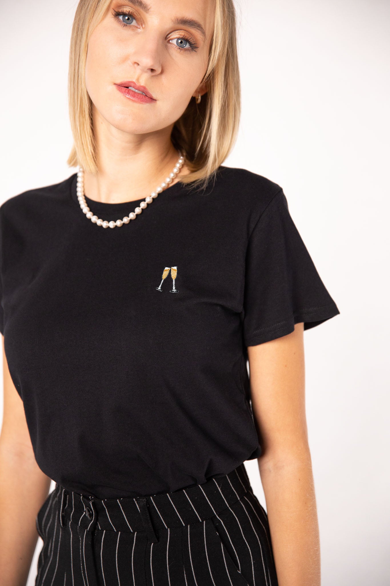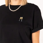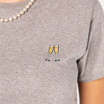 Besticktes Bio Baumwoll Frauen T-Shirt mit extrem angenehmen Stoff (155gsm) und gesticktem Sekt Design