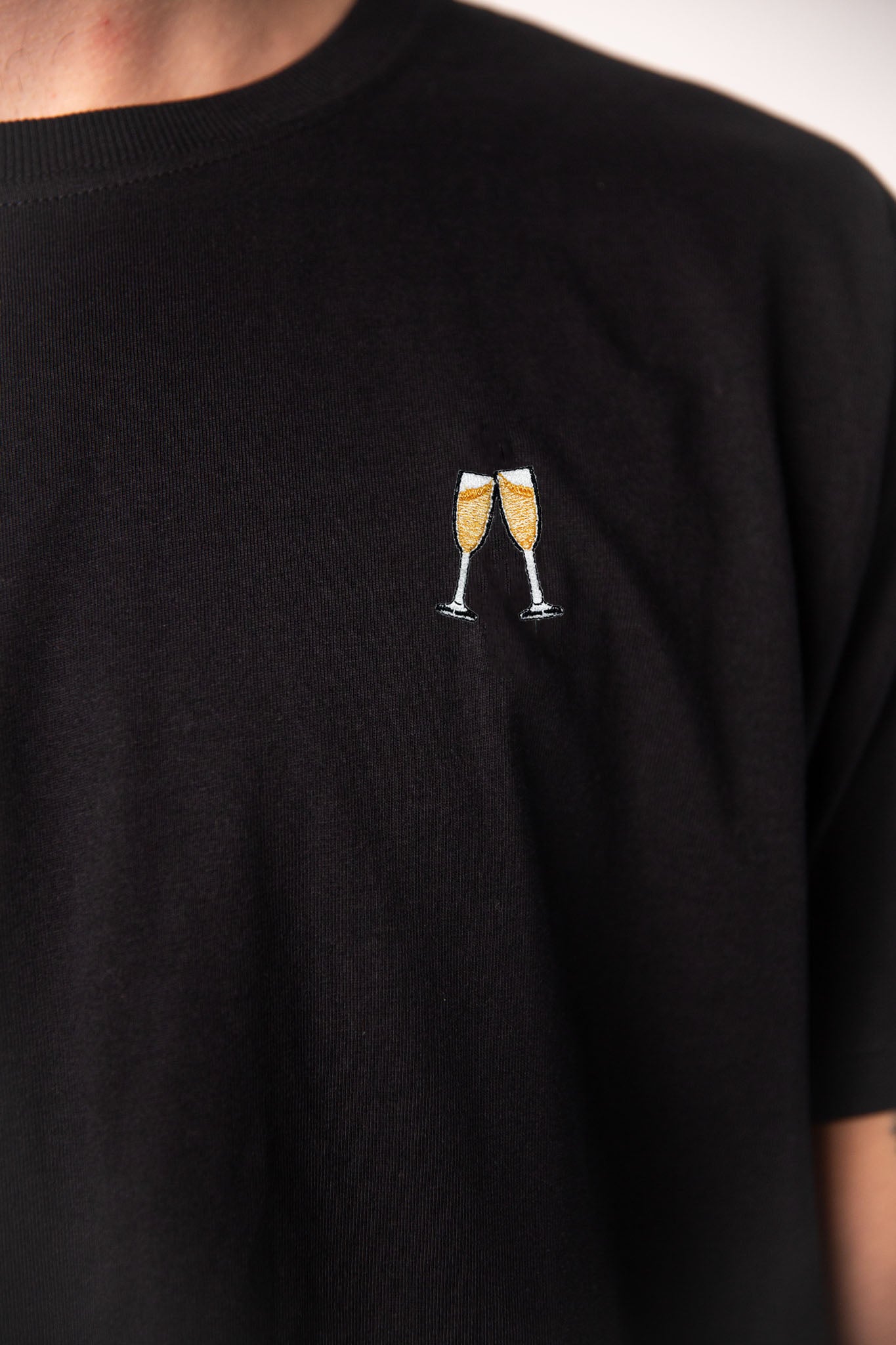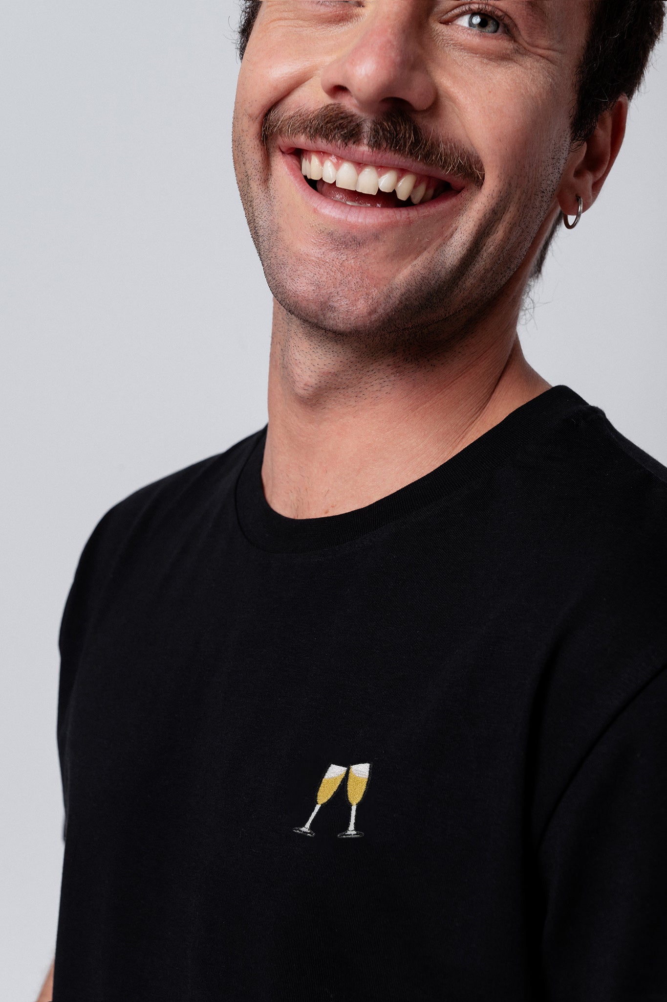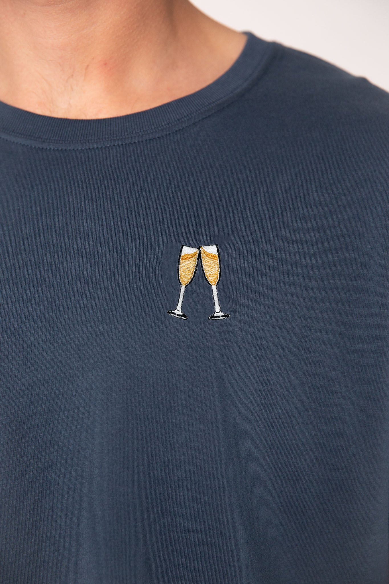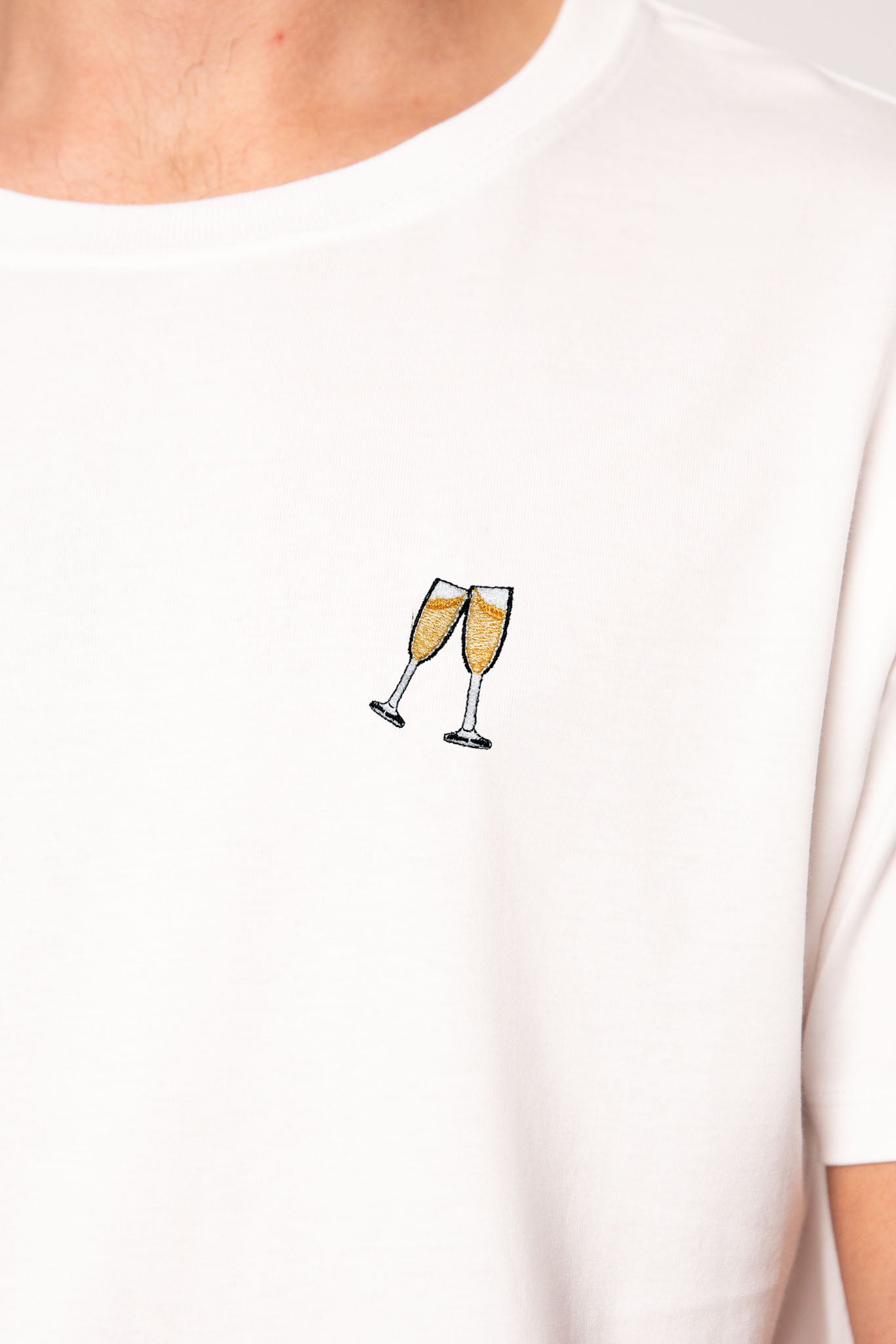 Besticktes  Bio Baumwoll Unisex T-Shirt mit schwerem Stoff (190gsm) und gesticktem Sekt Design