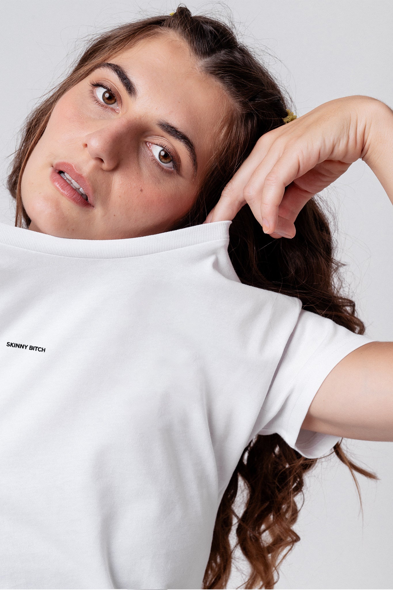 Besticktes Bio Baumwoll Frauen T-Shirt mit extrem angenehmen Stoff (155gsm) und gesticktem SKINNY BITCH Schriftzug