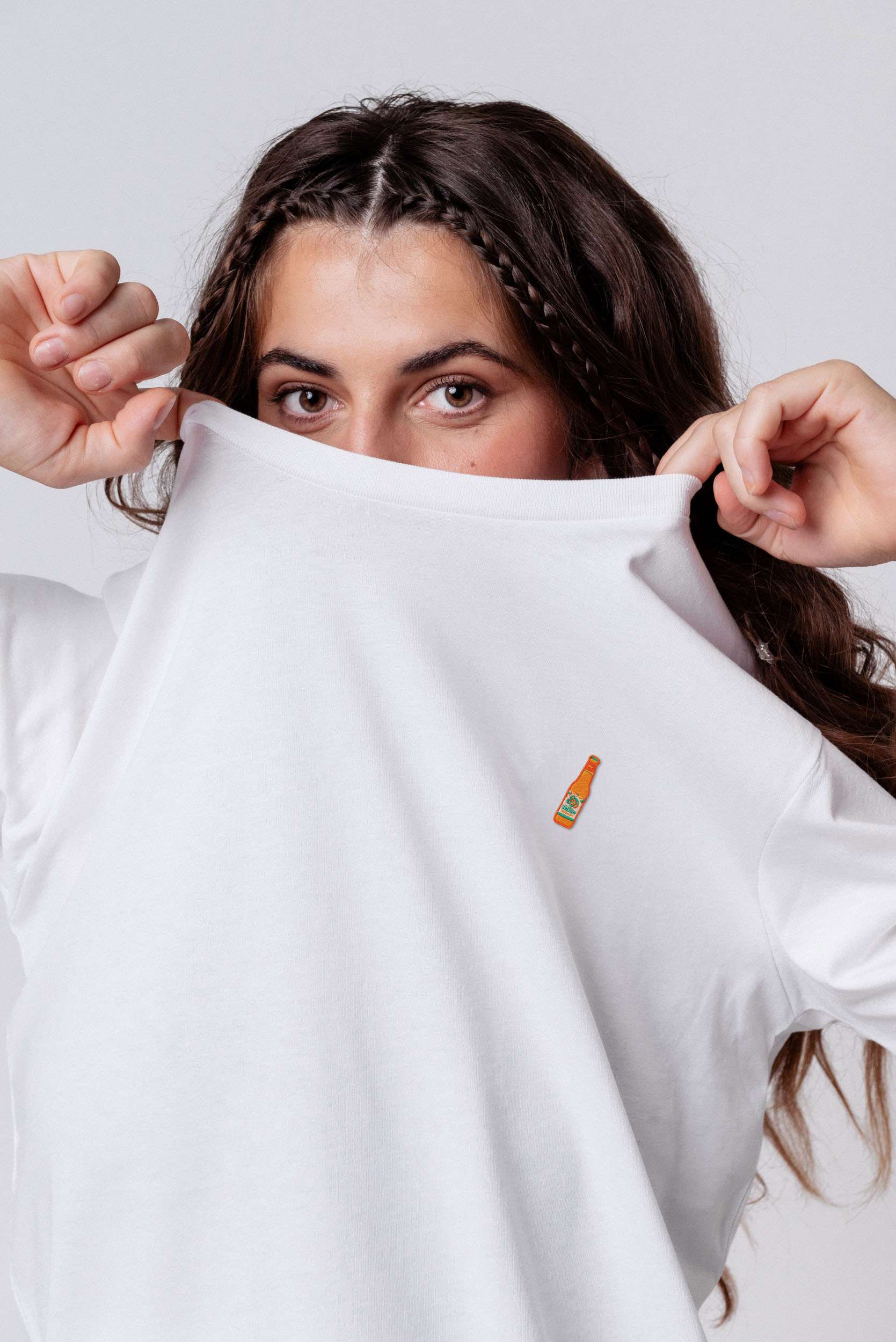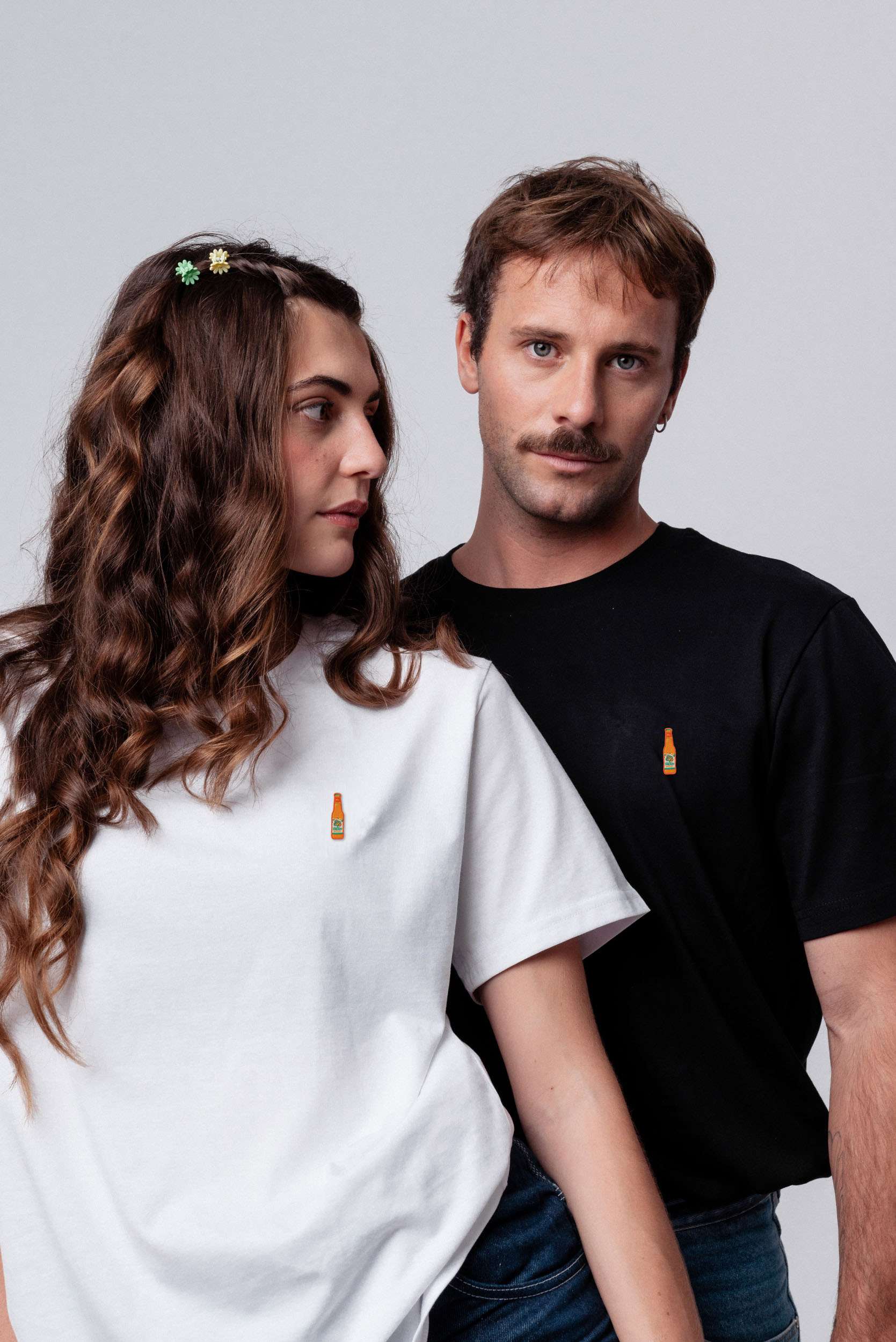 Besticktes Bio Baumwoll Unisex T-Shirt mit schwerem Stoff (190gsm) und gesticktem offiziellem Somersby Orange Spirtz Design