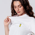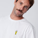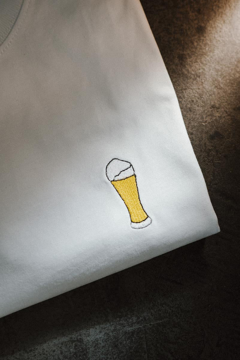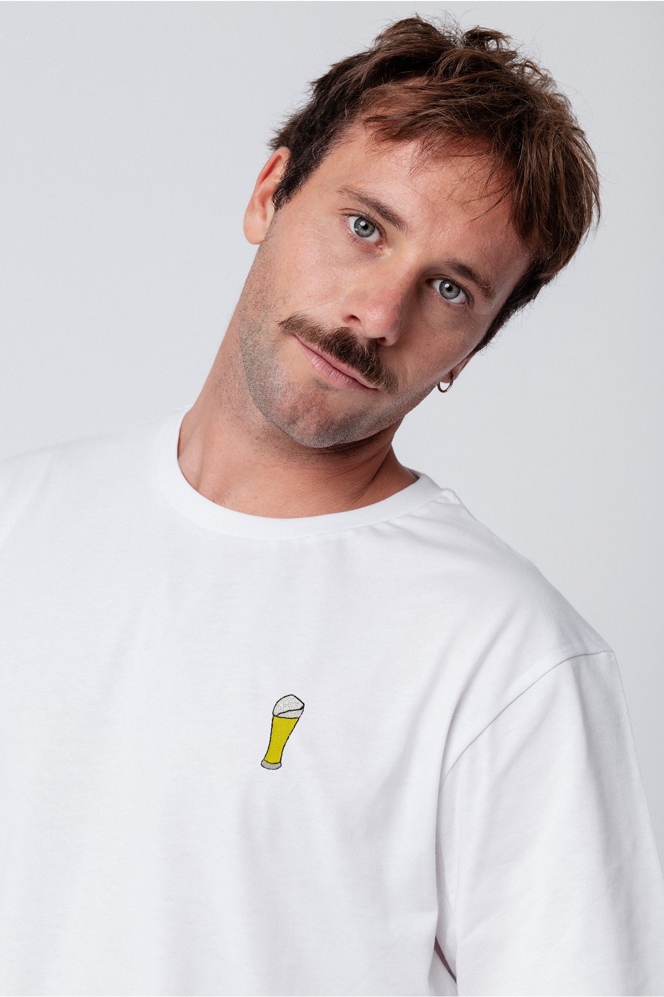 Besticktes Bio Baumwoll Unisex T-Shirt mit schwerem Stoff (190gsm) und gesticktem Weißbier Design