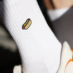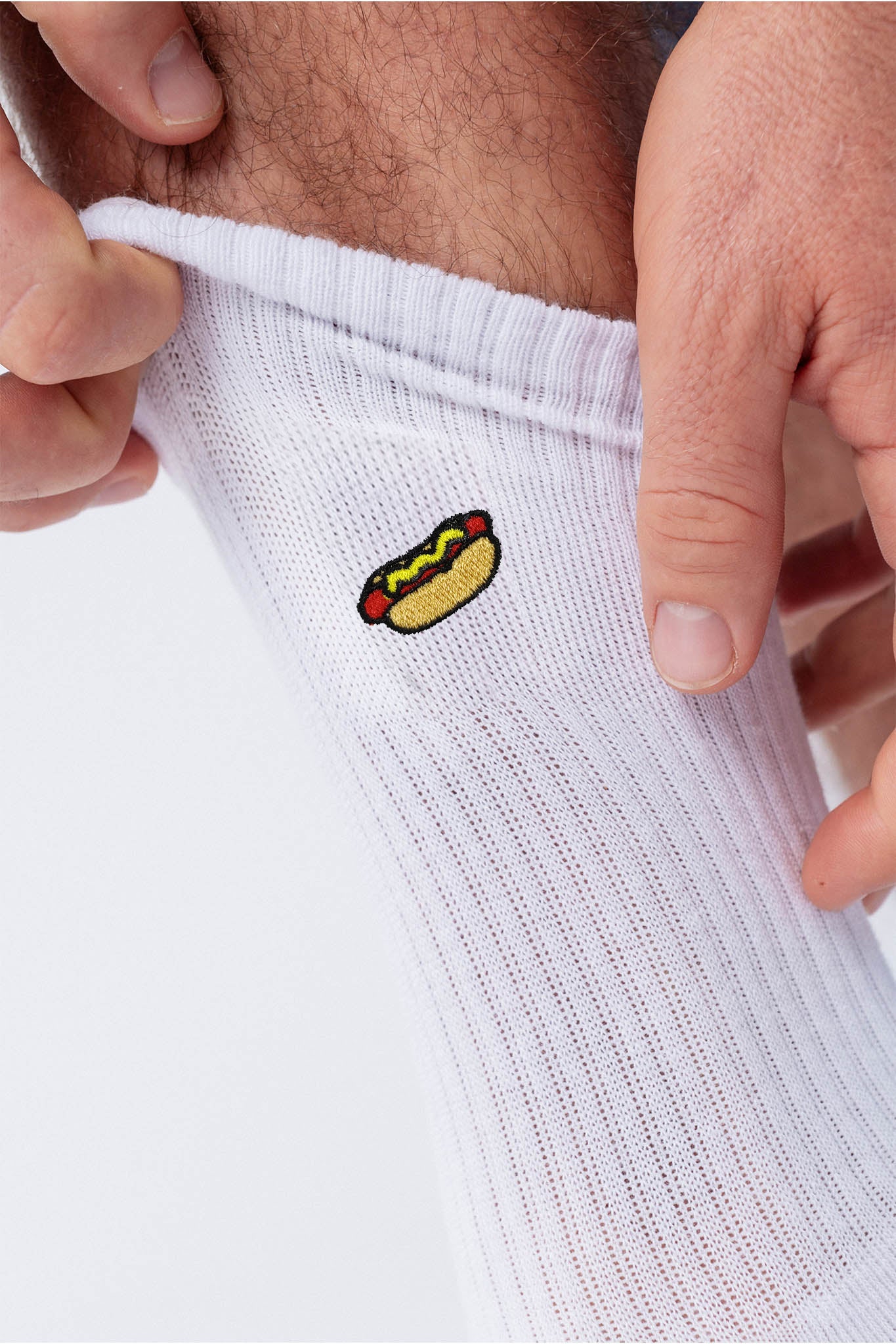 Super hochwertige Bio Baumwoll Crew Socken mit gesticktem Hot Dog Design