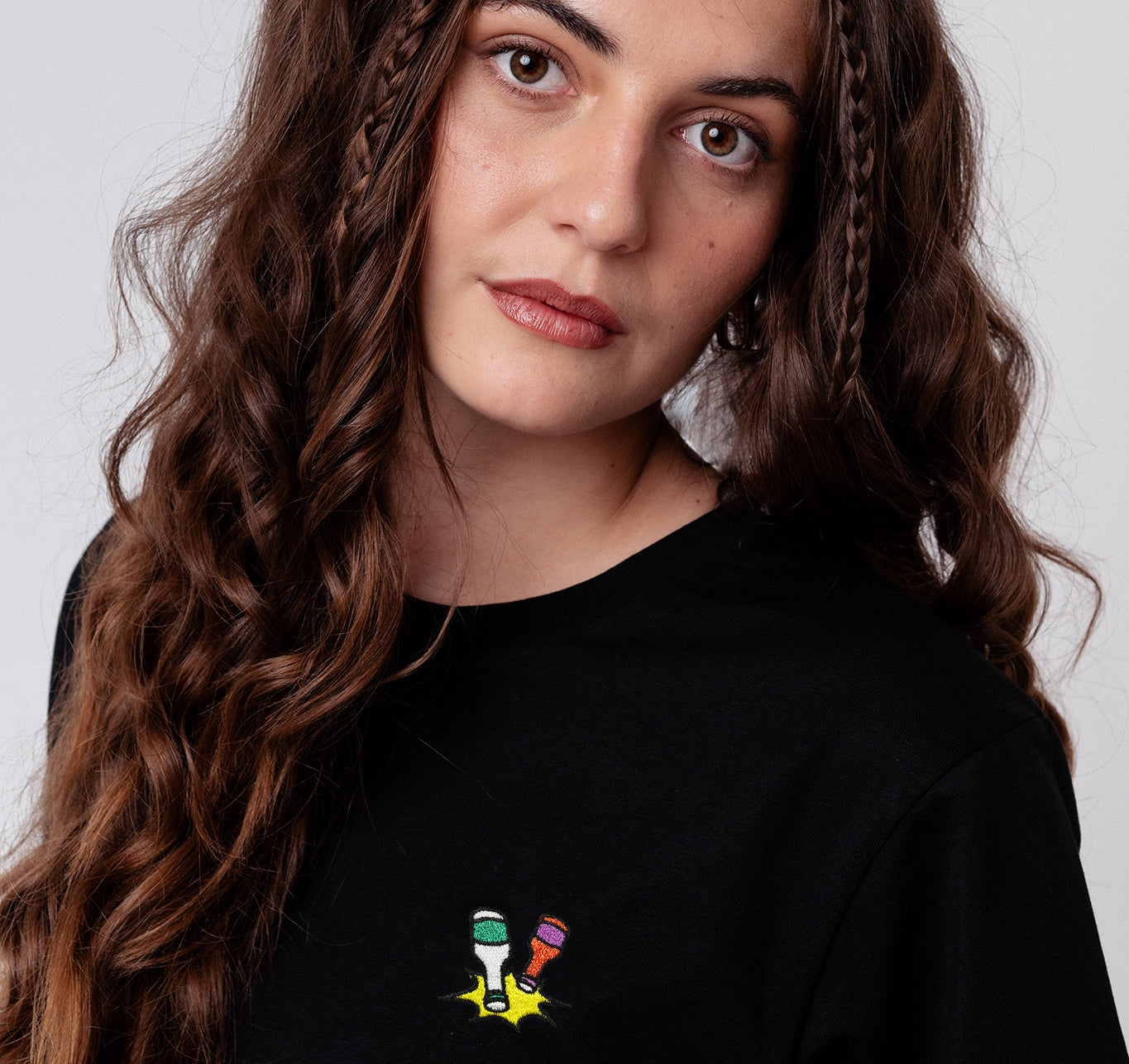 Jedes Design bei Fashion Drinks wird mit viel Liebe zum Detail handgezeichnet. Danach wird es sorgfältig auf unsere Stickmaschinen programmiert und übertragen. Während des Designprozesses führen wir im Schnitt 5-10 Probe-Stickvorgänge durch, um sicherzustellen, dass das Ergebnis 100% genau und perfekt ist. Unsere Spezialität ist die feine, detaillierte Stickerei im Bereich von 4-5 cm, auf die wir besonders stolz sind. So garantieren wir, dass jedes T-Shirt ein einzigartiges Kunstwerk ist, das höchste Qualität bietet.