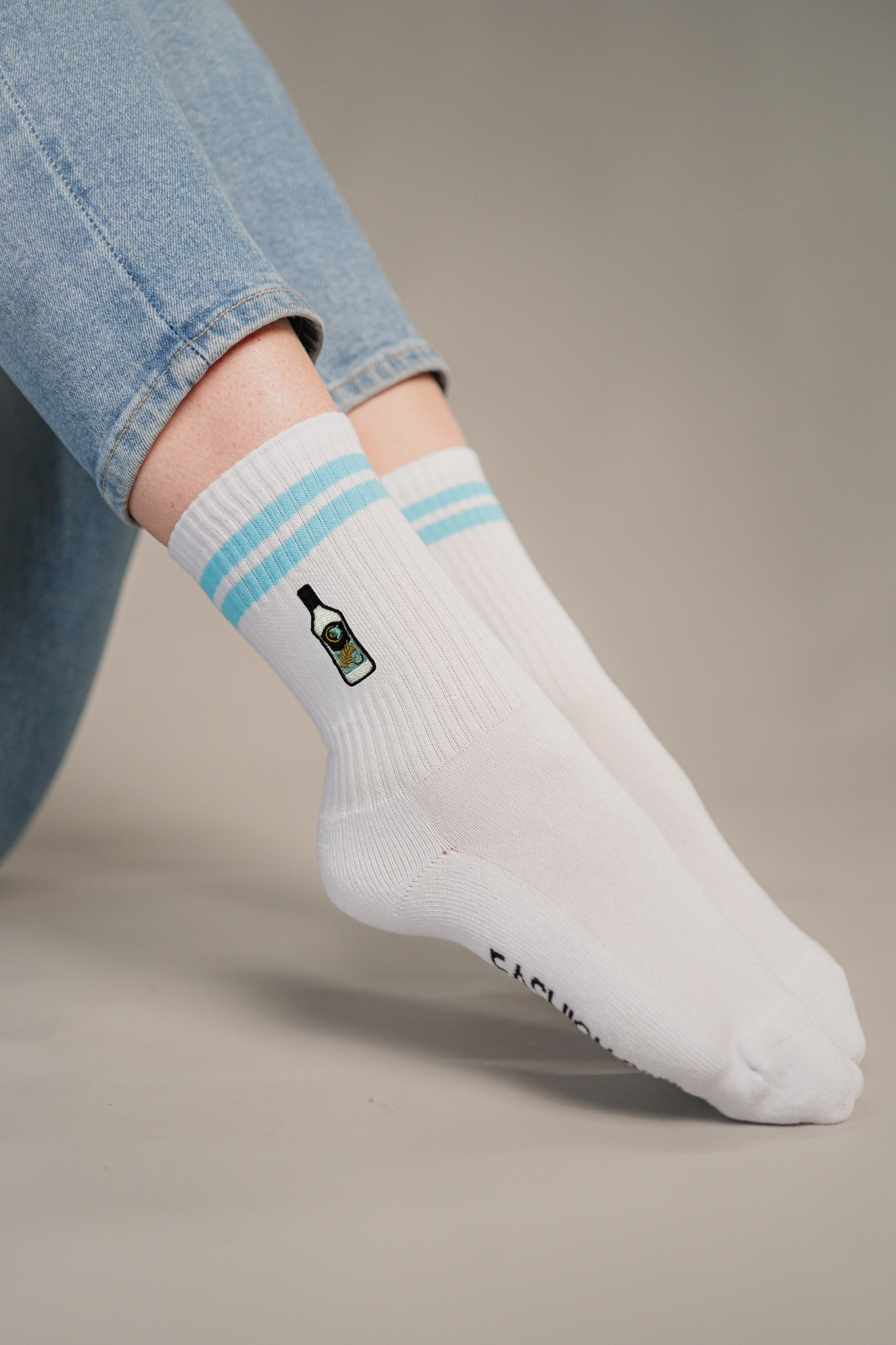 Die Stickerei auf unseren Fashion Drinks Socken bleibt auch nach mehrmaligem Waschen in einwandfreier Form. Wir verwenden präzise Industriemaschinen, die speziell für feine, detaillierte Stickarbeiten entwickelt wurden. So bleibt die Stickerei stabil und die Socken behalten ihre Form. Um die Qualität zu erhalten, empfehlen wir, die Socken bei niedrigen Temperaturen zu waschen und sie auf links zu drehen.