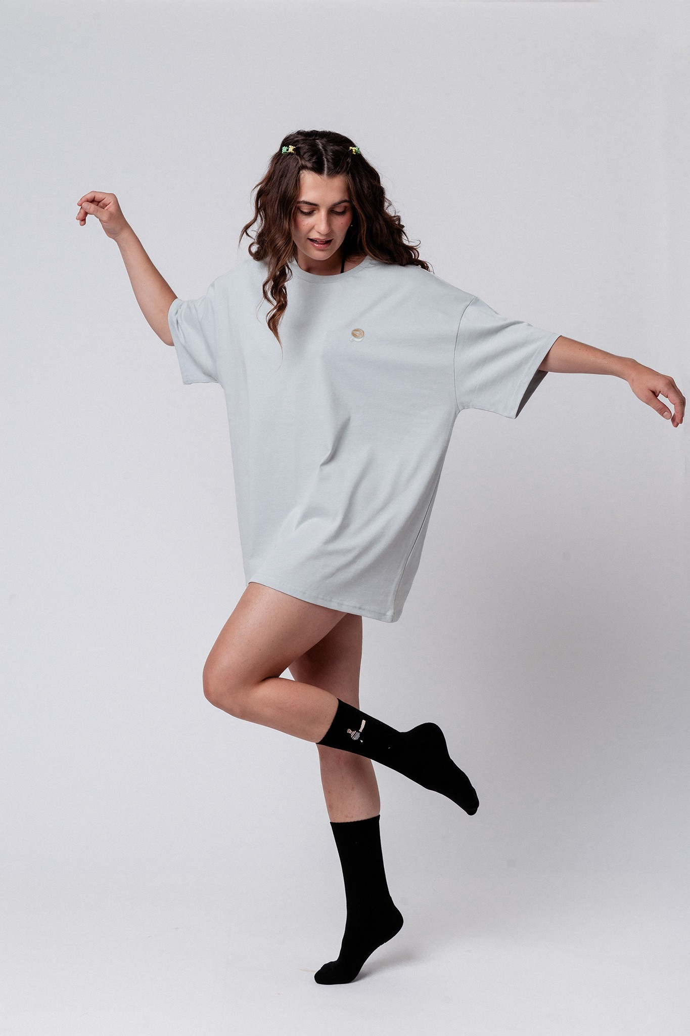 Heavy Oversized Bio Baumwoll T-Shirt mit extra schwerem Stoff (230gsm) und gesticktem Flat White Design