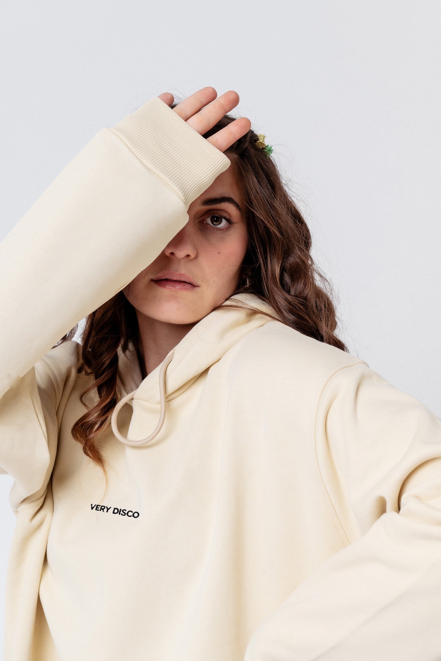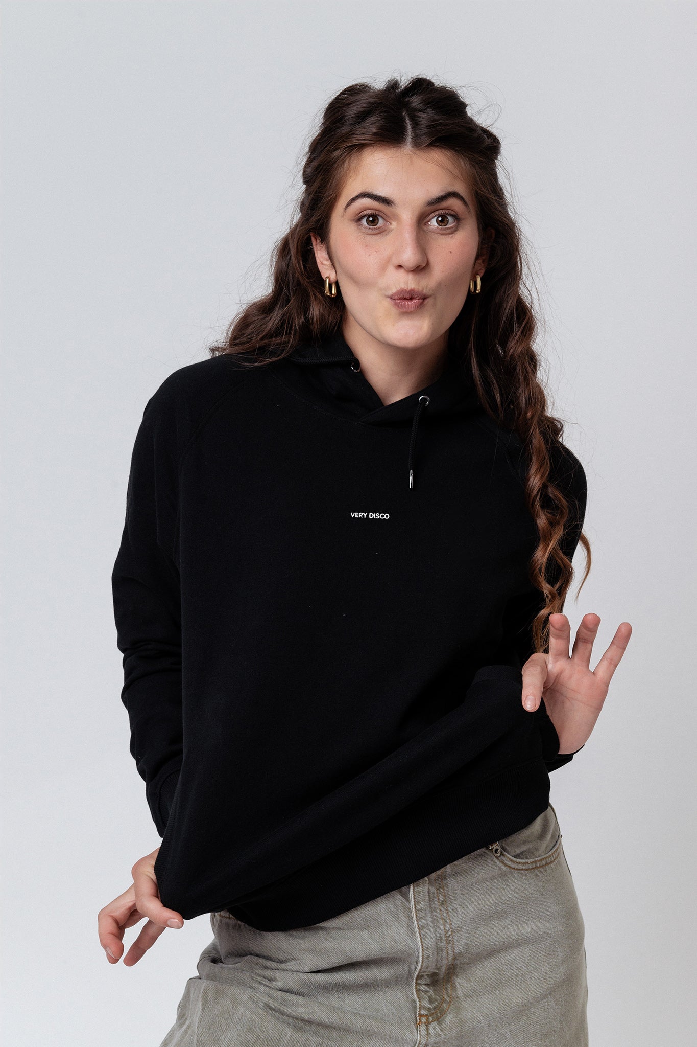 Super hochwertiger Bio Baumwoll Unisex Hoodie mit schwerem Stoff (350gsm) und gesticktem VERY DISCO Schriftzug