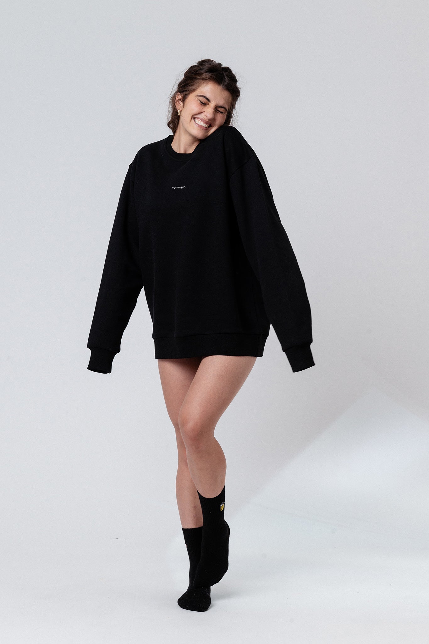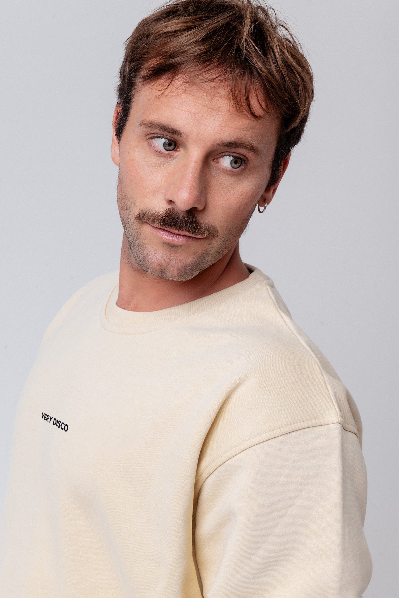 Bestickter Bio Baumwoll Unisex Pullover mit schwerem Stoff (320gsm) und gesticktem VERY DISCO Schriftzug
