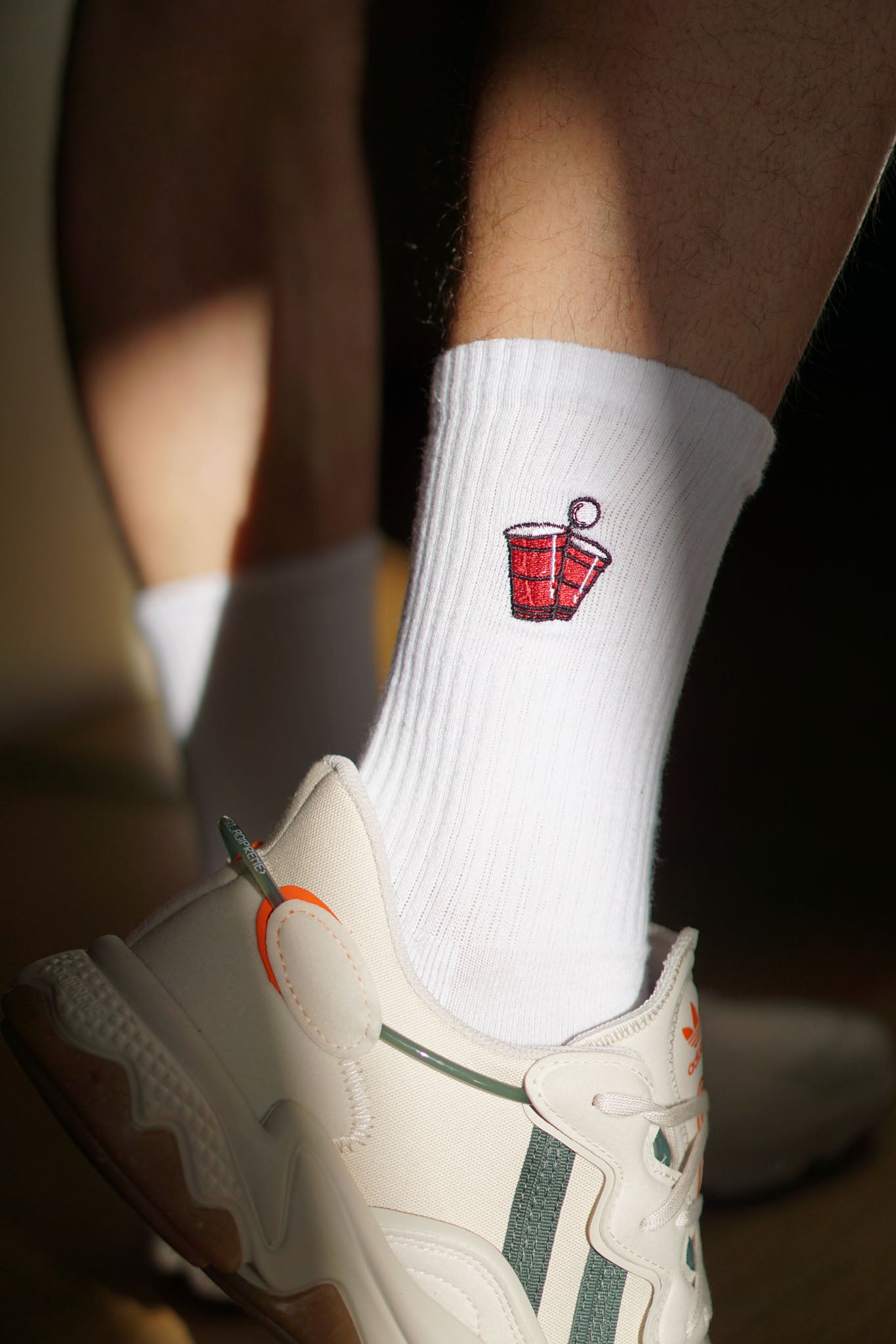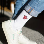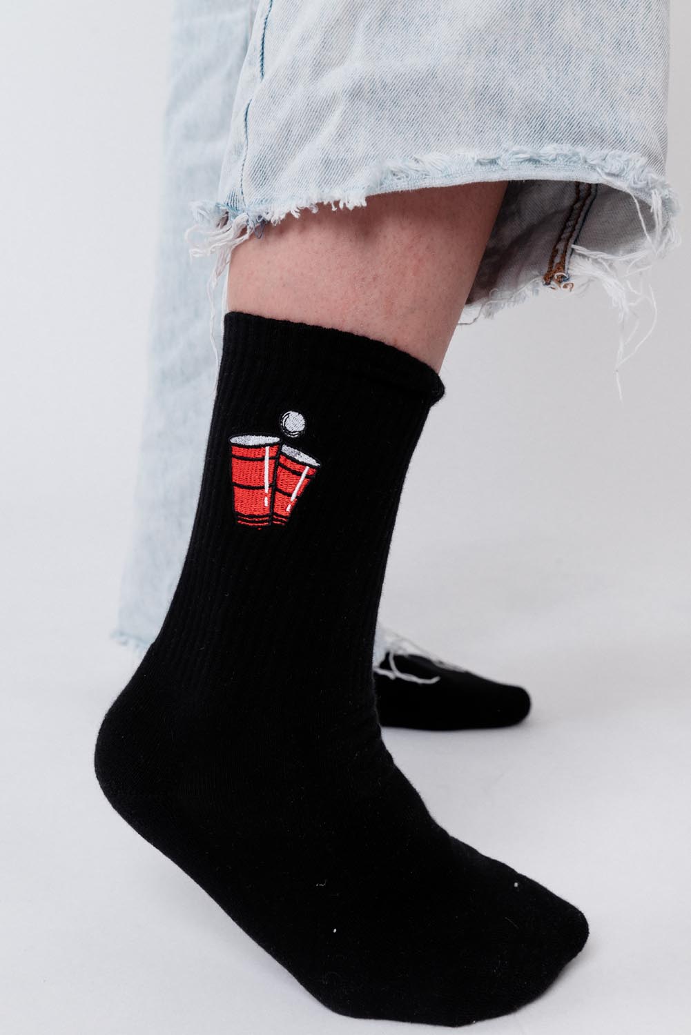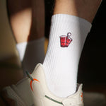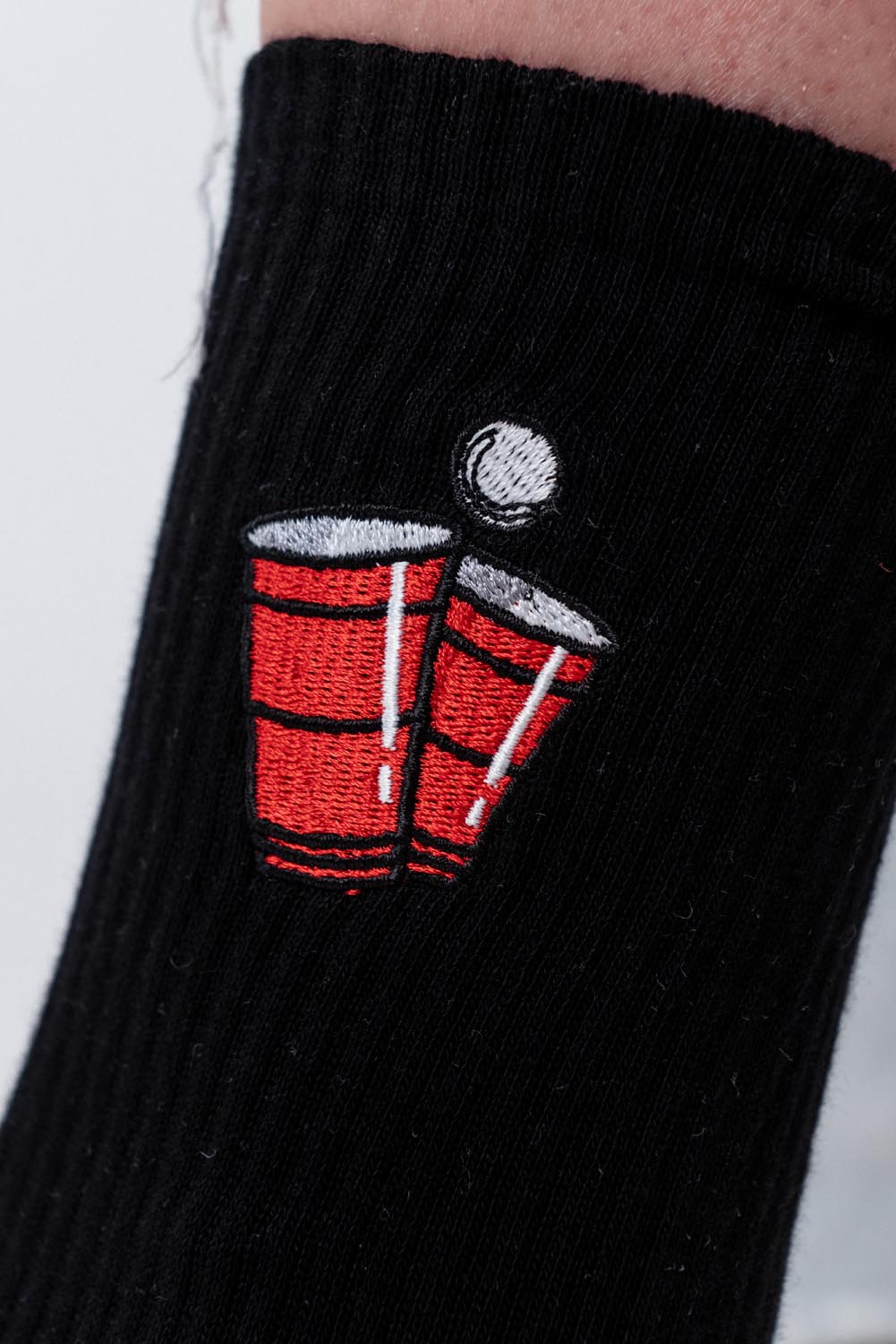 Super hochwertige Bio Baumwoll Crew Socken mit gesticktem Beerpong Design