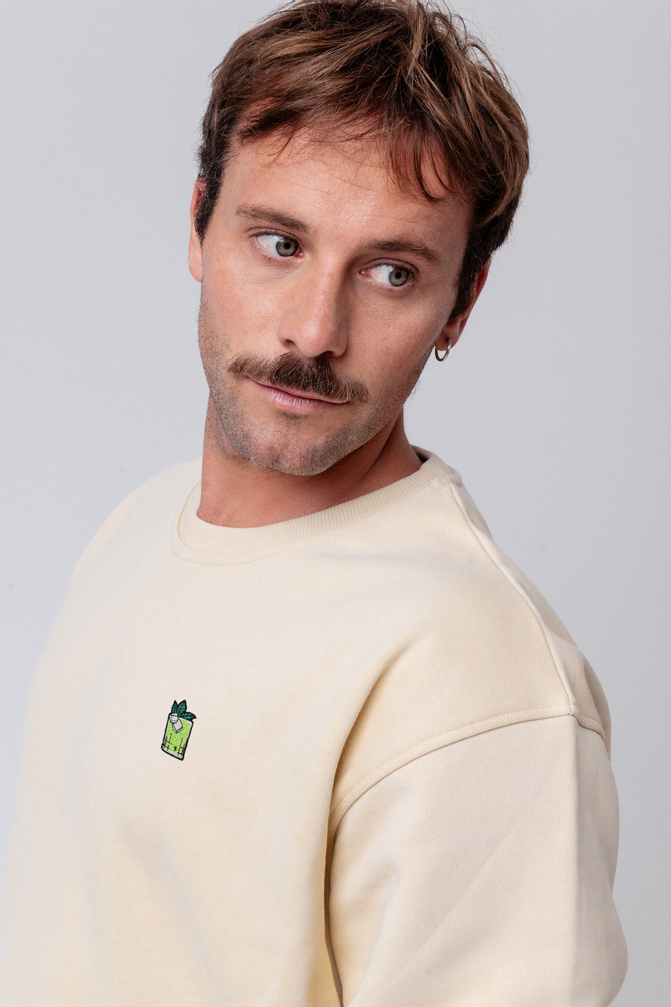 Bestickter Bio Baumwoll Unisex Pullover mit schwerem Stoff (320gsm) und gesticktem Gin Basil Smash Design