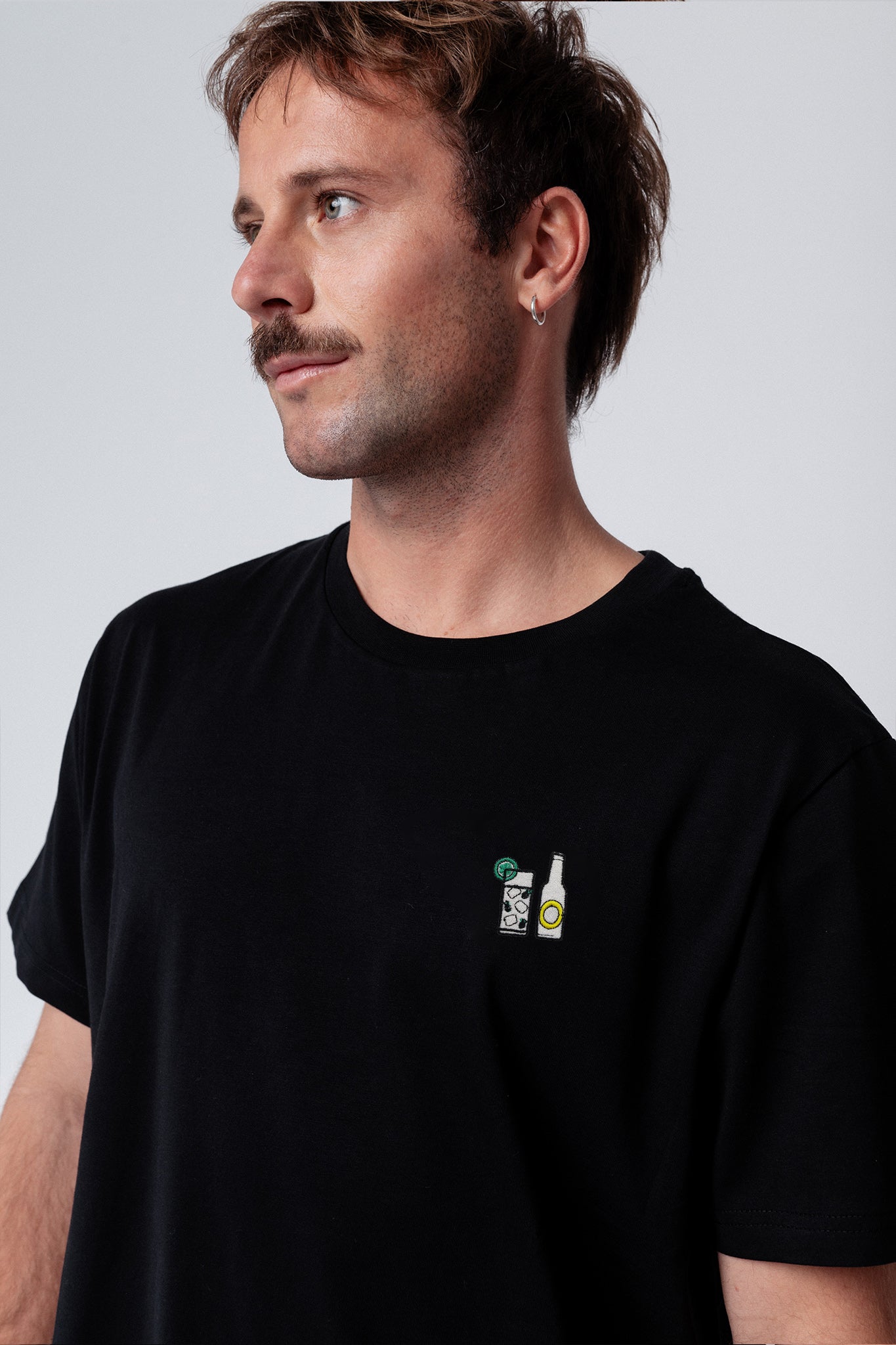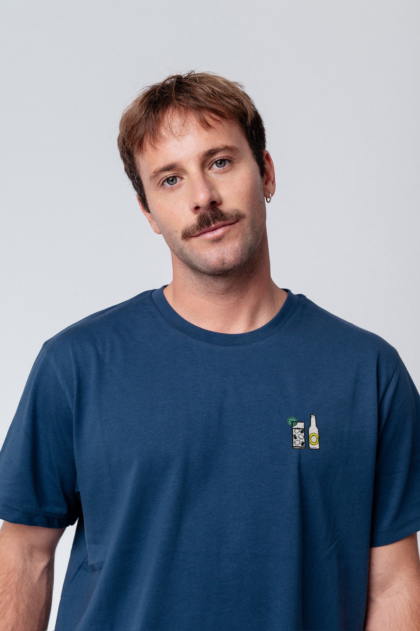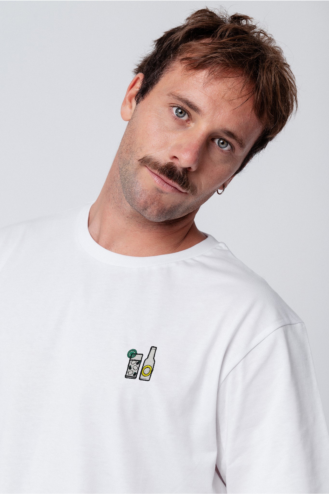 Besticktes Bio Baumwoll Unisex T-Shirt mit schwerem Stoff (190gsm) und gesticktem Gin Tonic Design