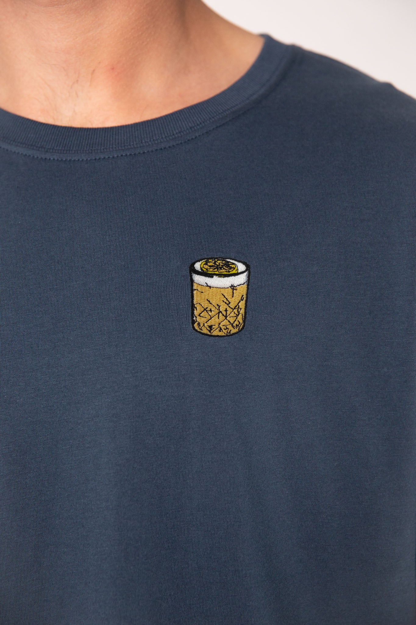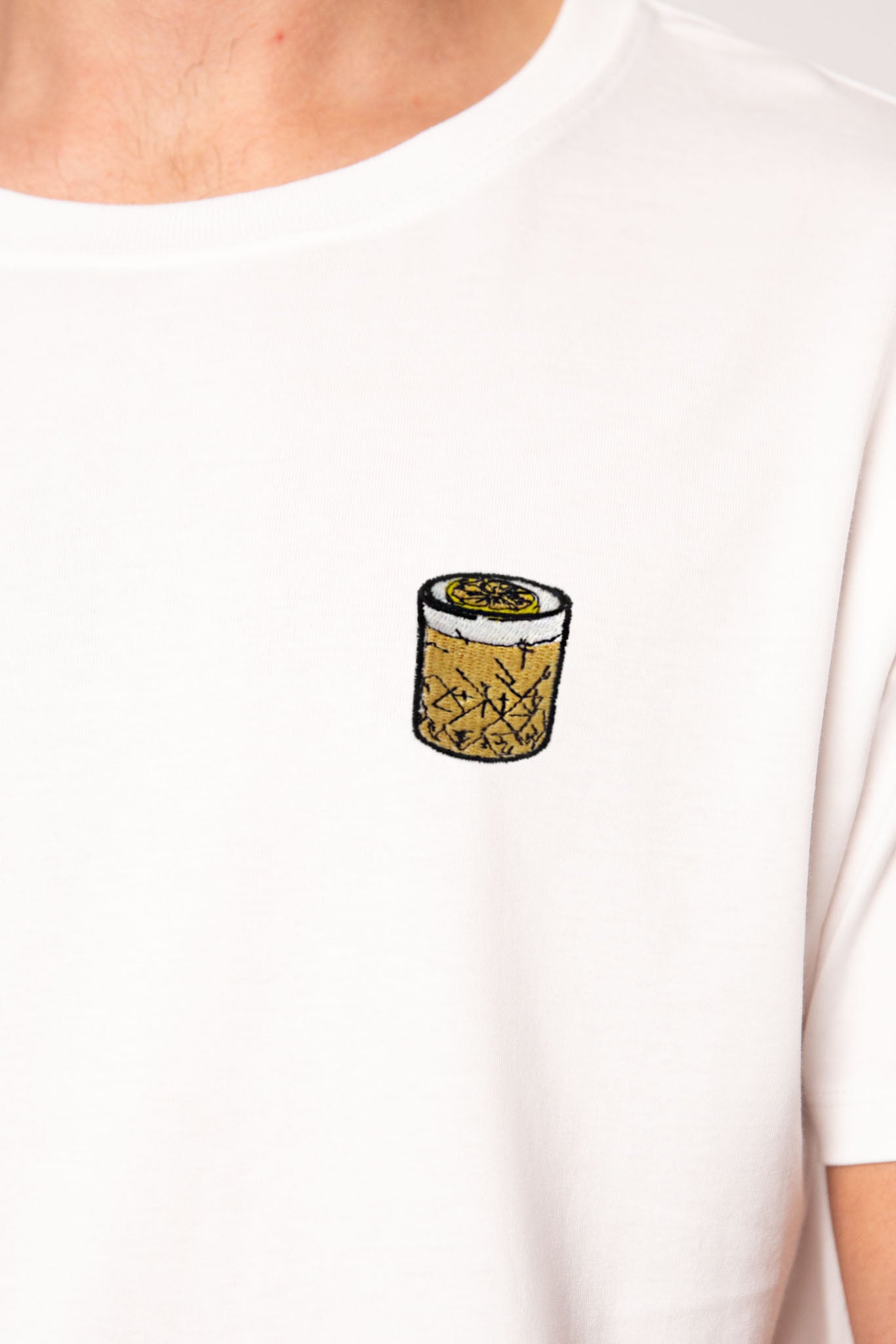 Besticktes Bio Baumwoll Unisex T-Shirt mit schwerem Stoff (190gsm) und gesticktem Whisky Sour Design