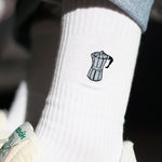 Super hochwertige Bio Baumwoll Crew Socken mit gesticktem Espressokocher Design