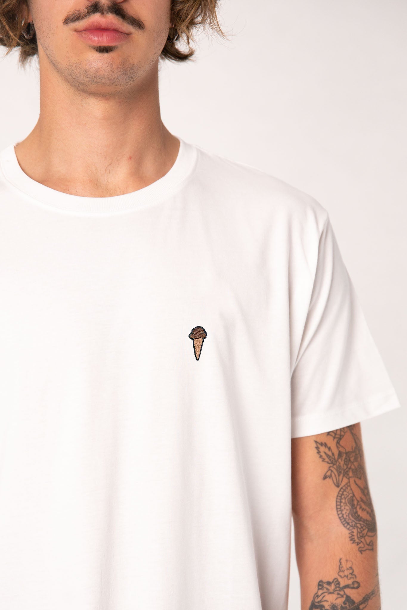 Besticktes Bio Baumwoll Unisex T-Shirt mit schwerem Stoff (190gsm) und gesticktem Eis Design - wähle deine Lieblingssorte: Schoki, Erdbeere oder Vanille 🍦