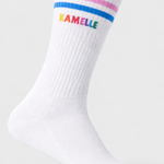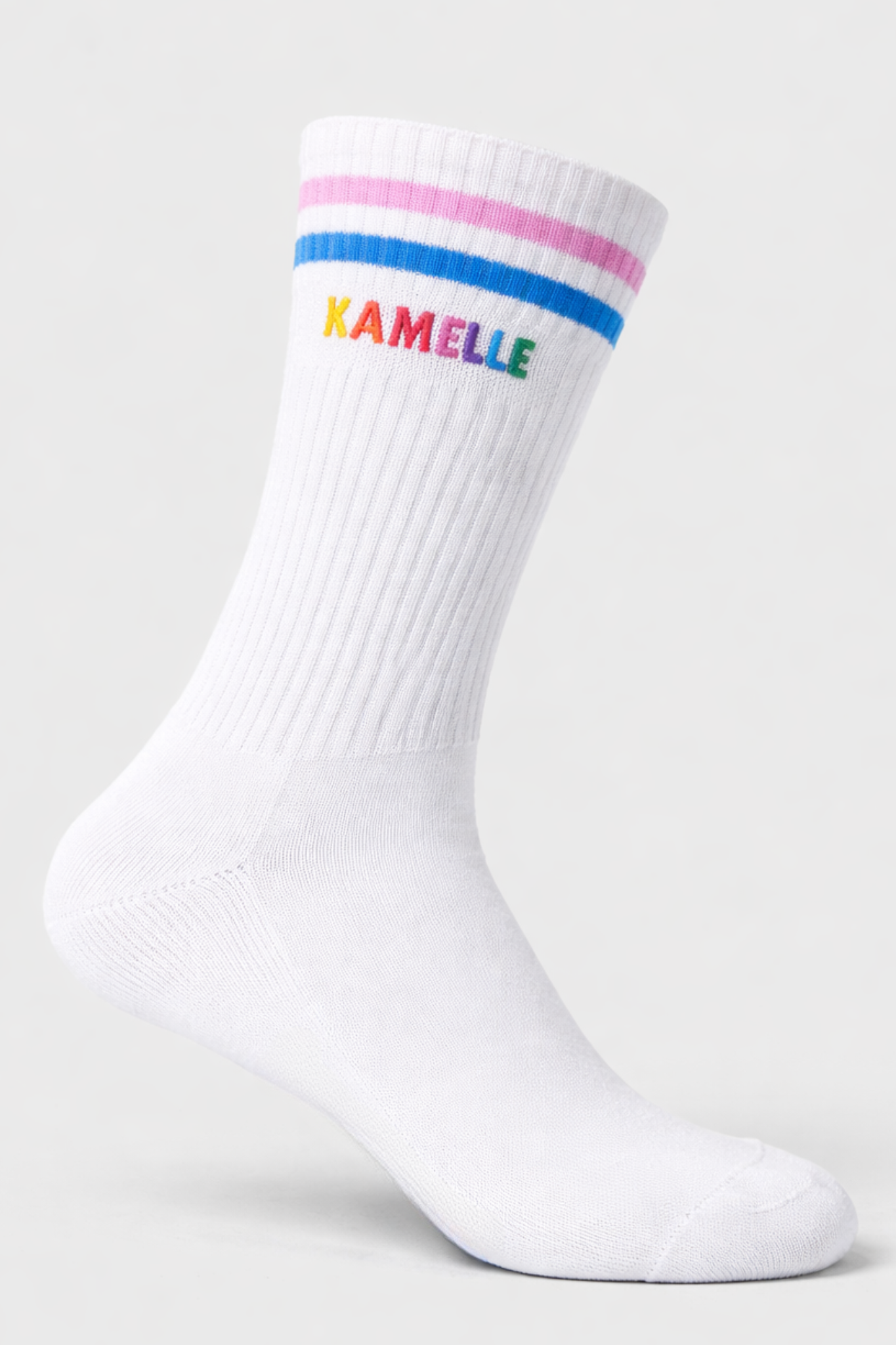 Perfekt für die Karnevalsaison: Super hochwertige Bio Baumwoll Crew Socken mit gesticktem Kamelle Schriftzug