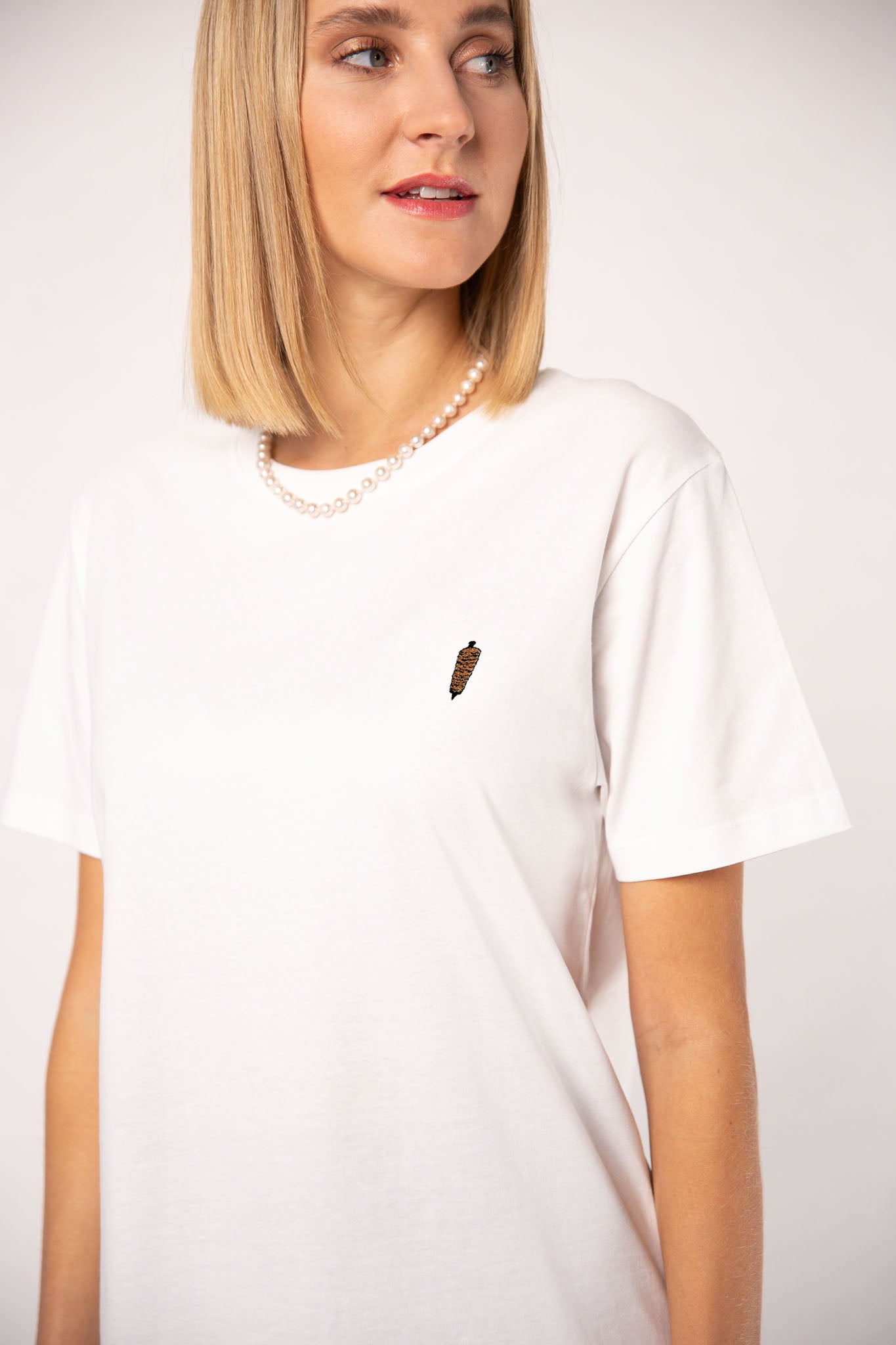 Besticktes Bio Baumwoll Unisex T-Shirt mit schwerem Stoff (190gsm) und gesticktem Dönerspieß Design