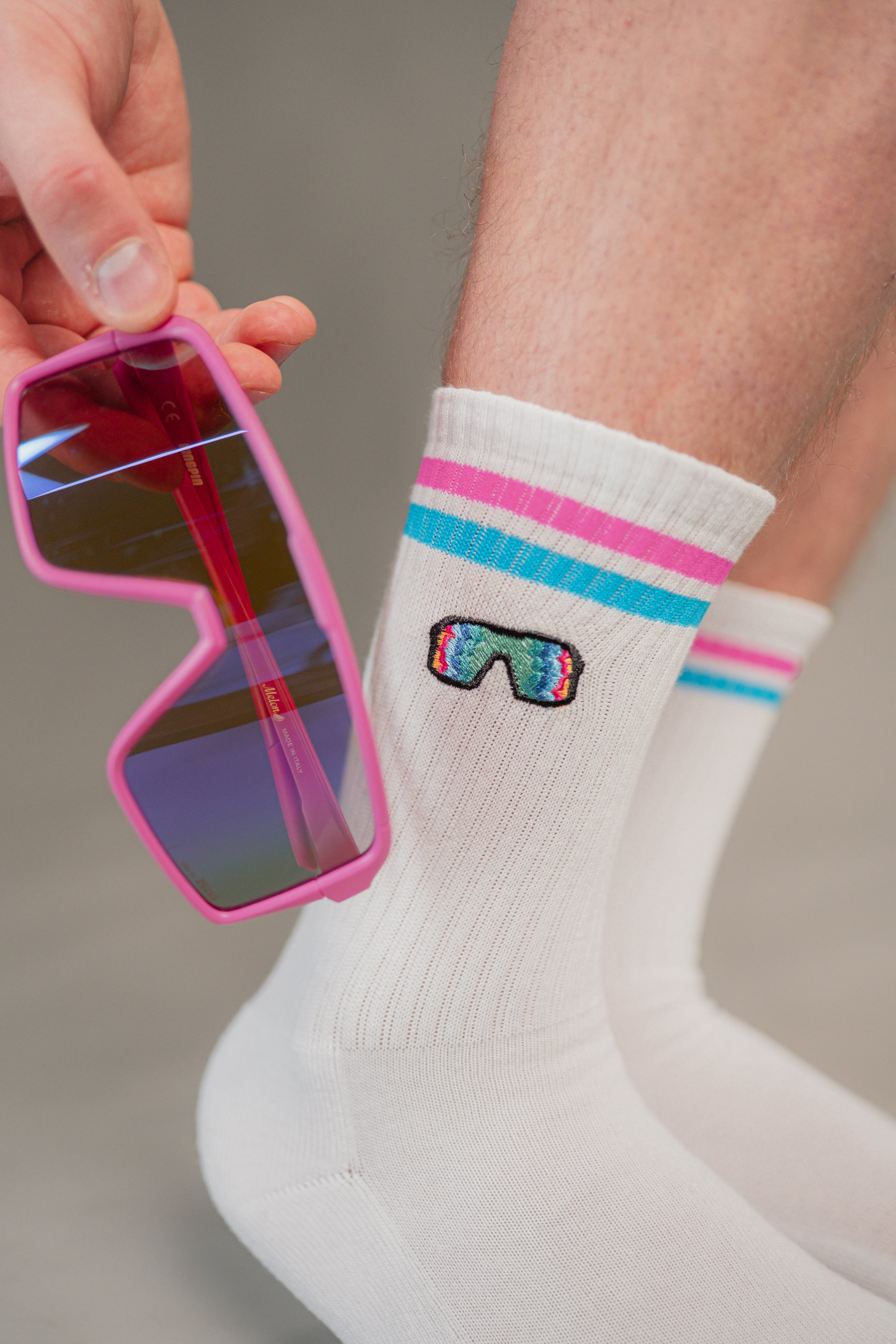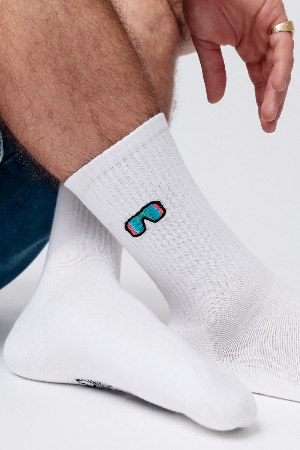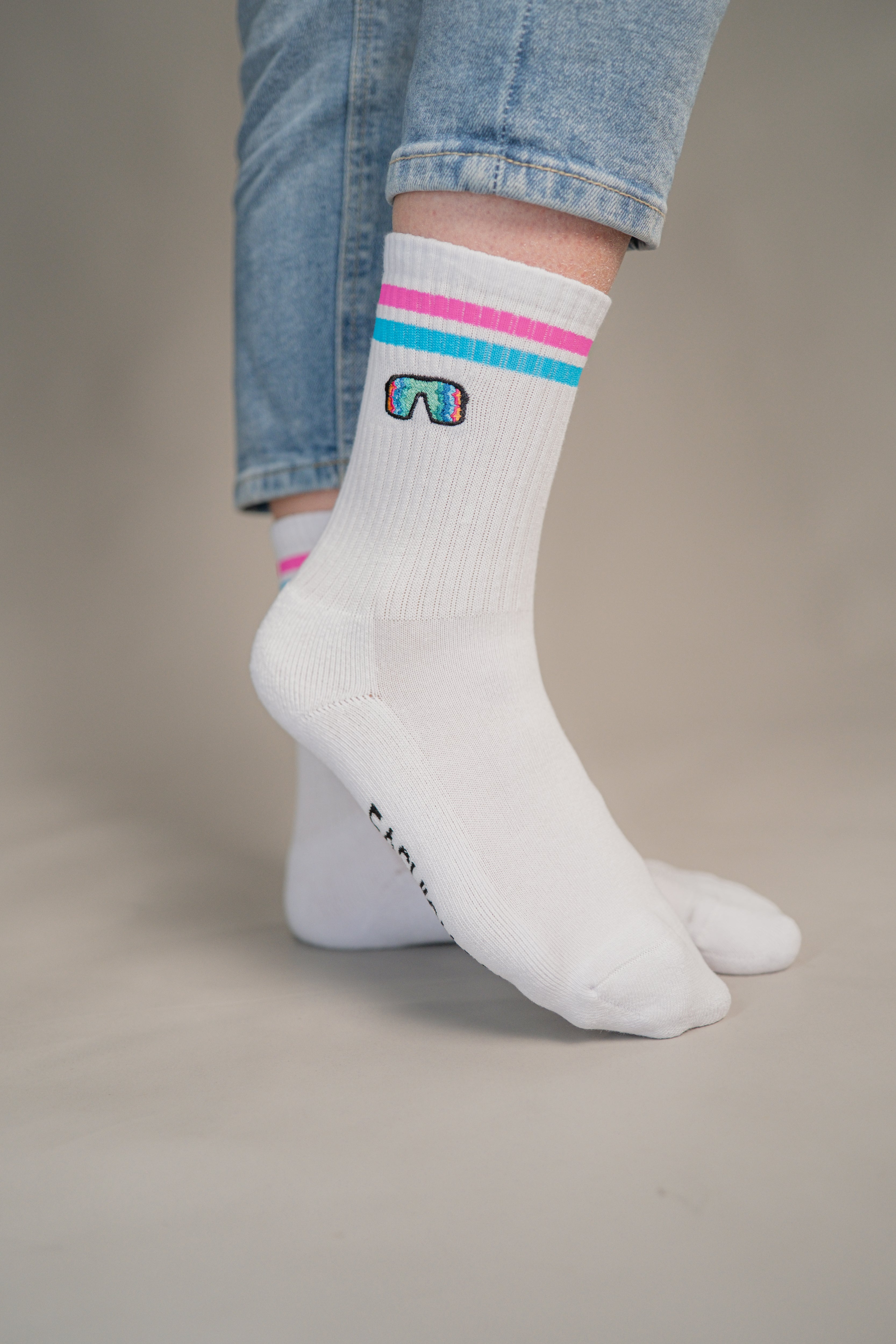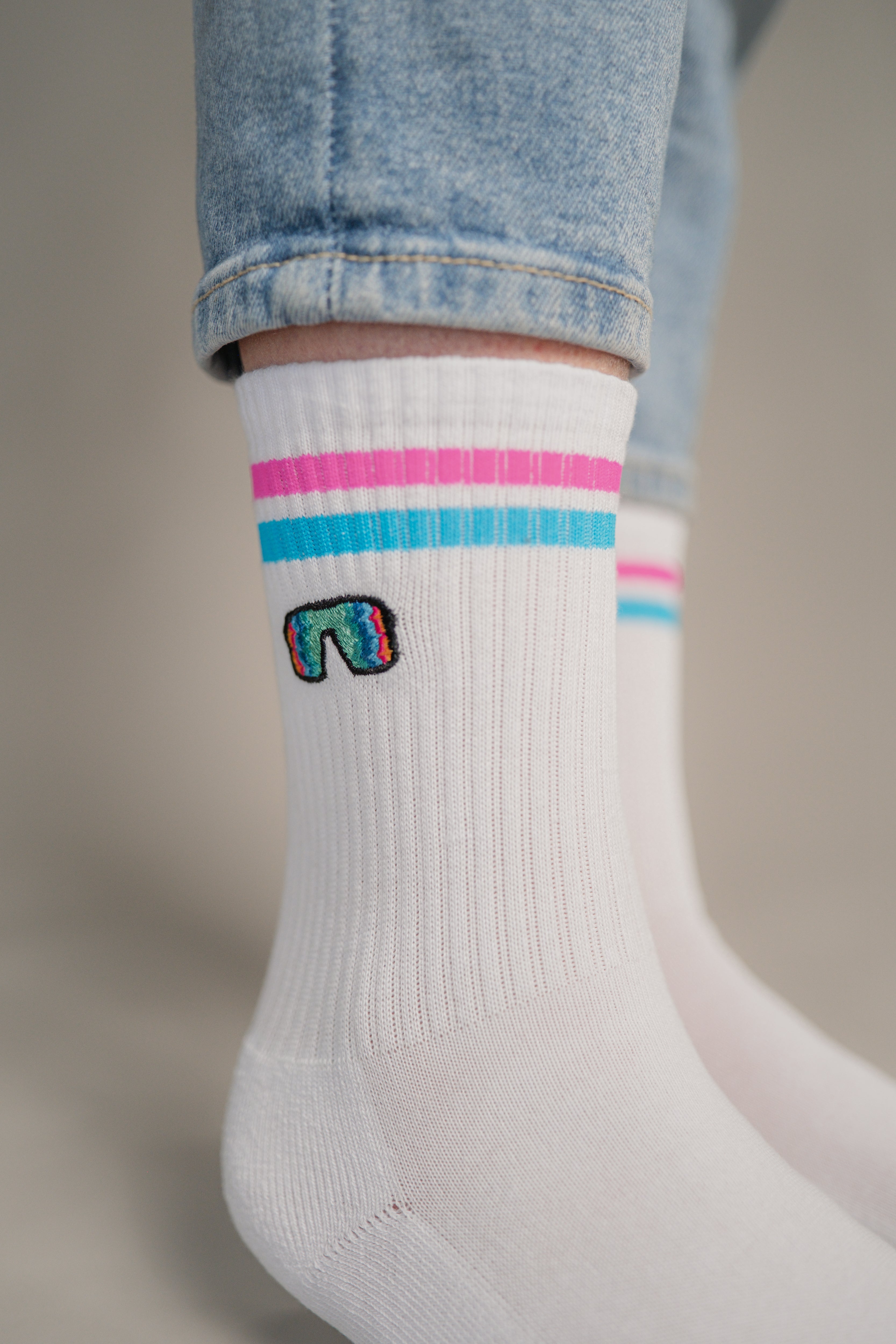 • Bestickt auf beiden Socken (jeweils außen)