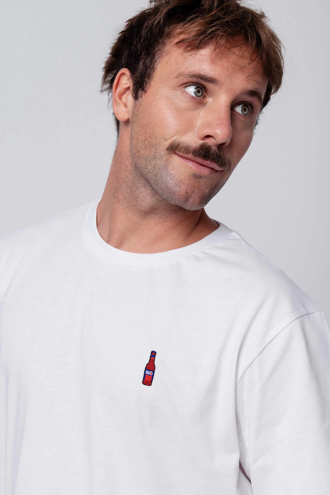 Besticktes Bio Baumwoll Unisex T-Shirt mit schwerem Stoff (190gsm) und der offiziellen gestickten Bionade Flasche