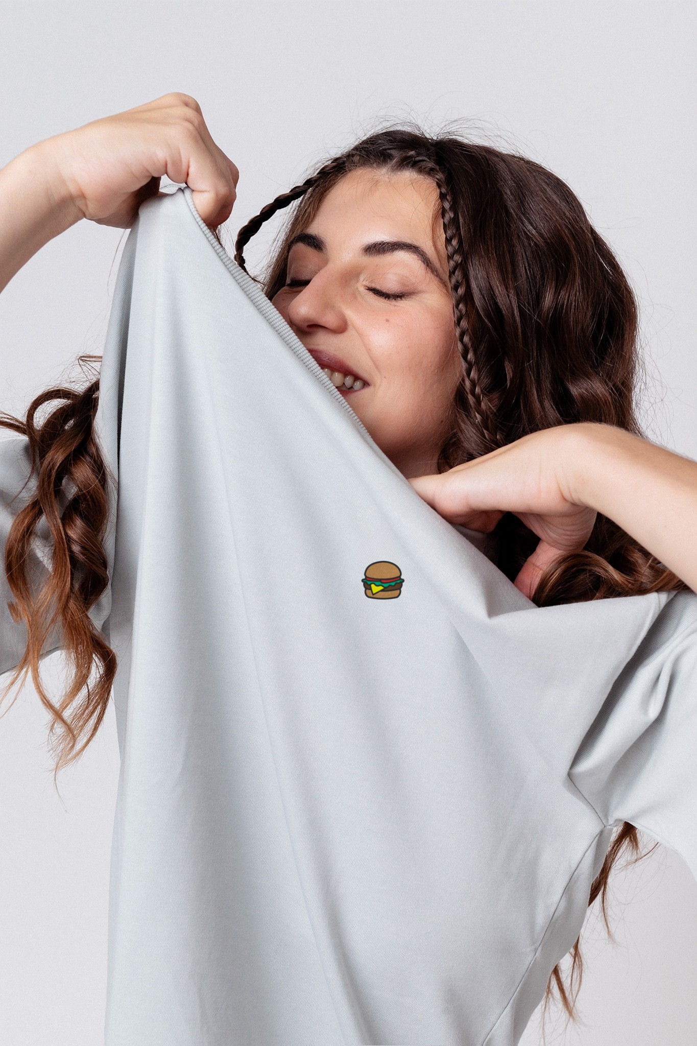 Heavy Oversized Bio Baumwoll T-Shirt mit extra schwerem Stoff (230gsm) und gesticktem Burger Design