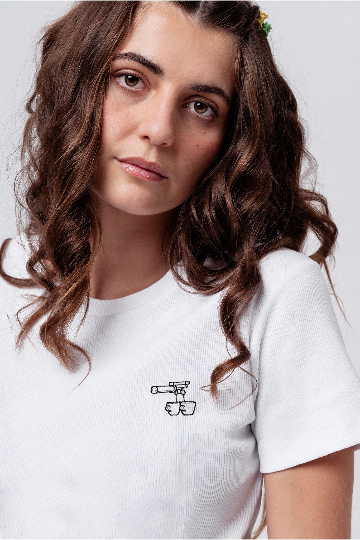 Due Caffé | Besticktes Bio Baumwoll Cropped T-Shirt