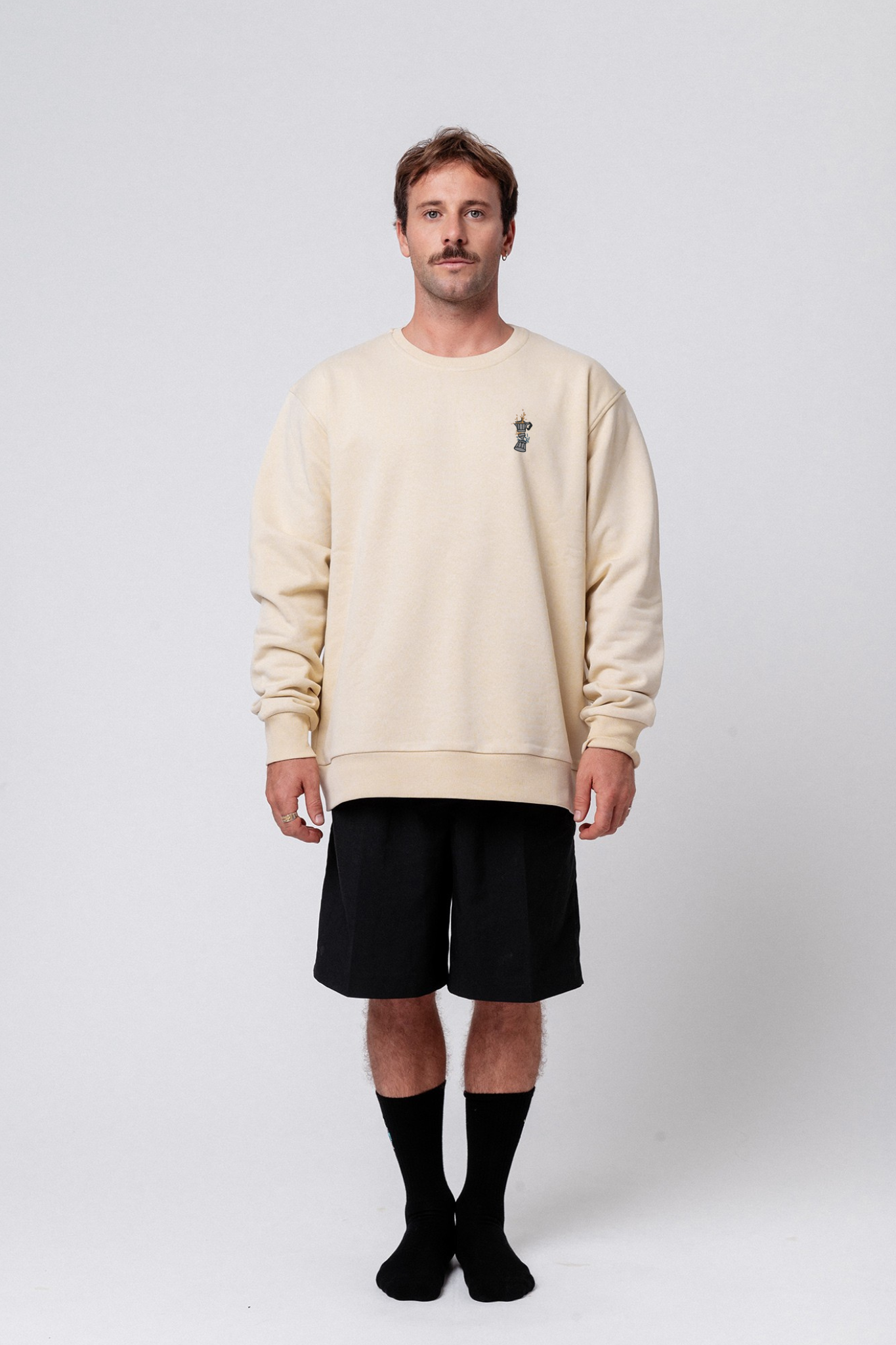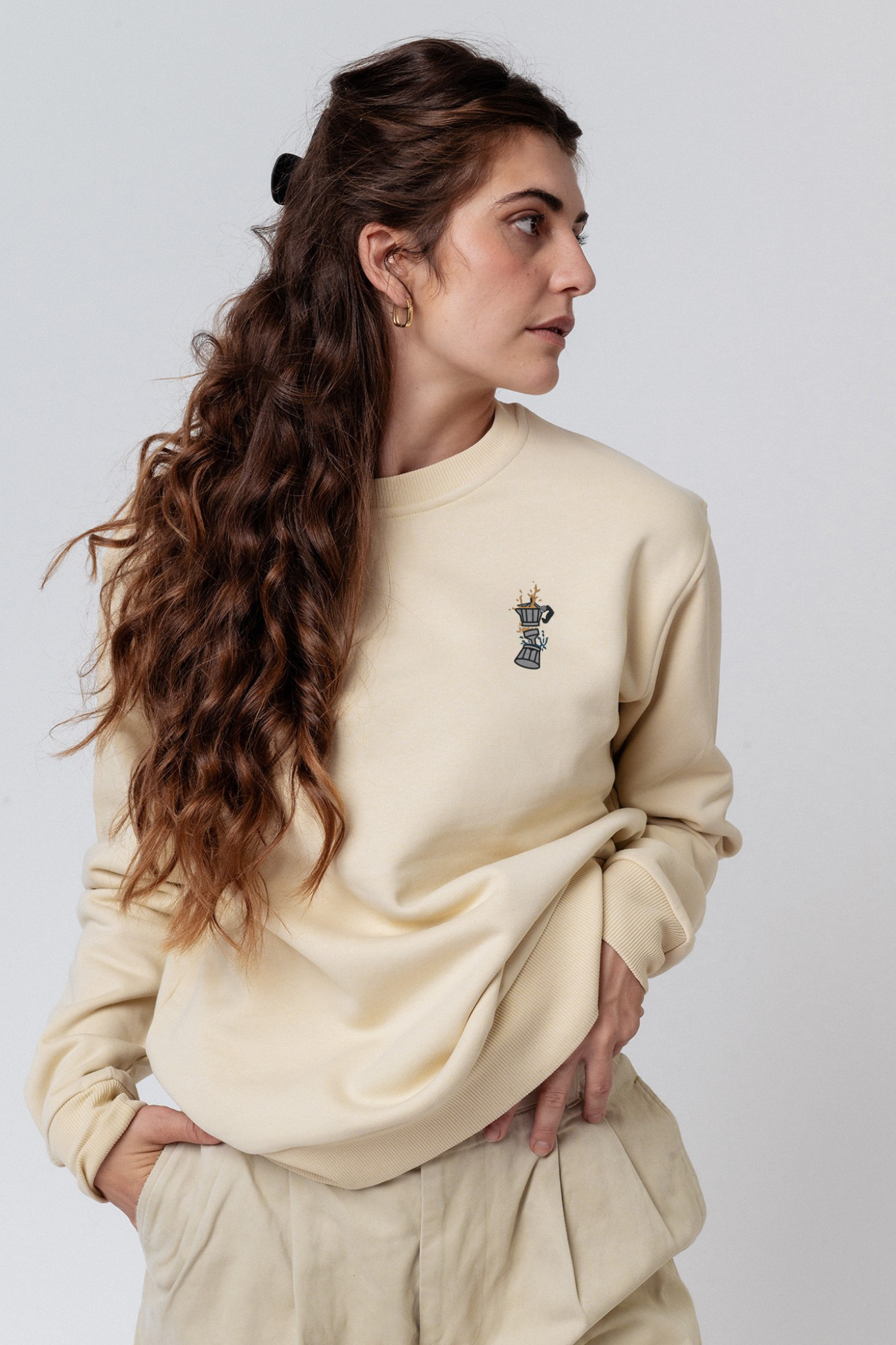 Super hochwertiger Bio Baumwoll Unisex Pullover mit extrem angenehmen Stoff (350gsm) und gesticktem Espressokocher Boom Design