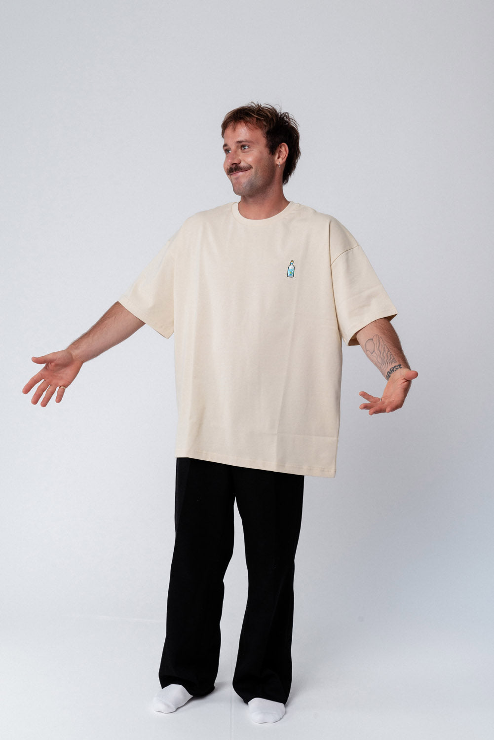 Heavy Oversized Bio Baumwoll T-Shirt mit extra schwerem Stoff (230gsm) und der offiziellen gestickten GIN SUL Flasche