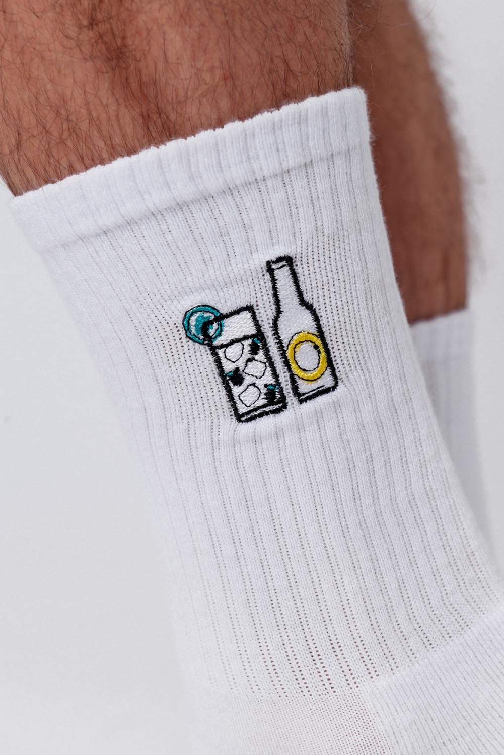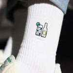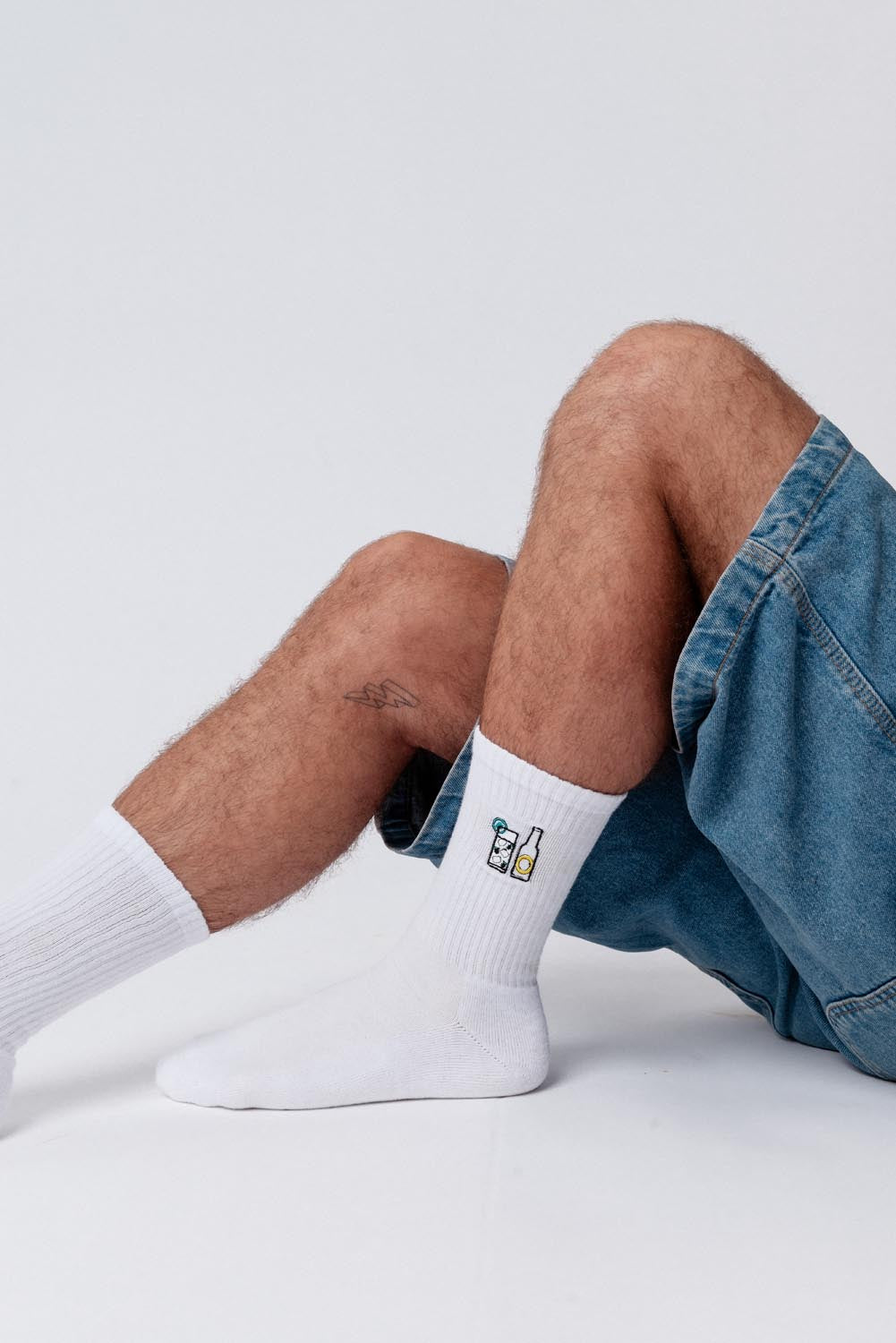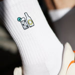 Super hochwertige Bio Baumwoll Crew Socken mit gesticktem Gin & Tonic Design
