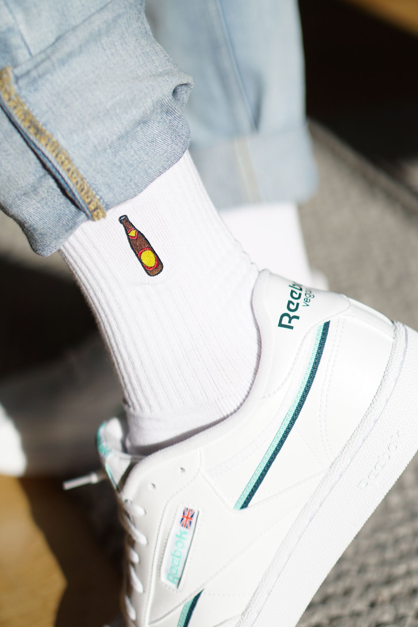 Die Stickerei auf unseren Fashion Drinks Socken bleibt auch nach mehrmaligem Waschen in einwandfreier Form. Wir verwenden präzise Industriemaschinen, die speziell für feine, detaillierte Stickarbeiten entwickelt wurden. So bleibt die Stickerei stabil und die Socken behalten ihre Form. Um die Qualität zu erhalten, empfehlen wir, die Socken bei niedrigen Temperaturen zu waschen und sie auf links zu drehen.