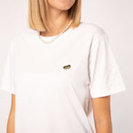 Besticktes Bio Baumwoll Frauen T-Shirt mit extrem angenehmen Stoff (155gsm) und gesticktem Hot Dog Design