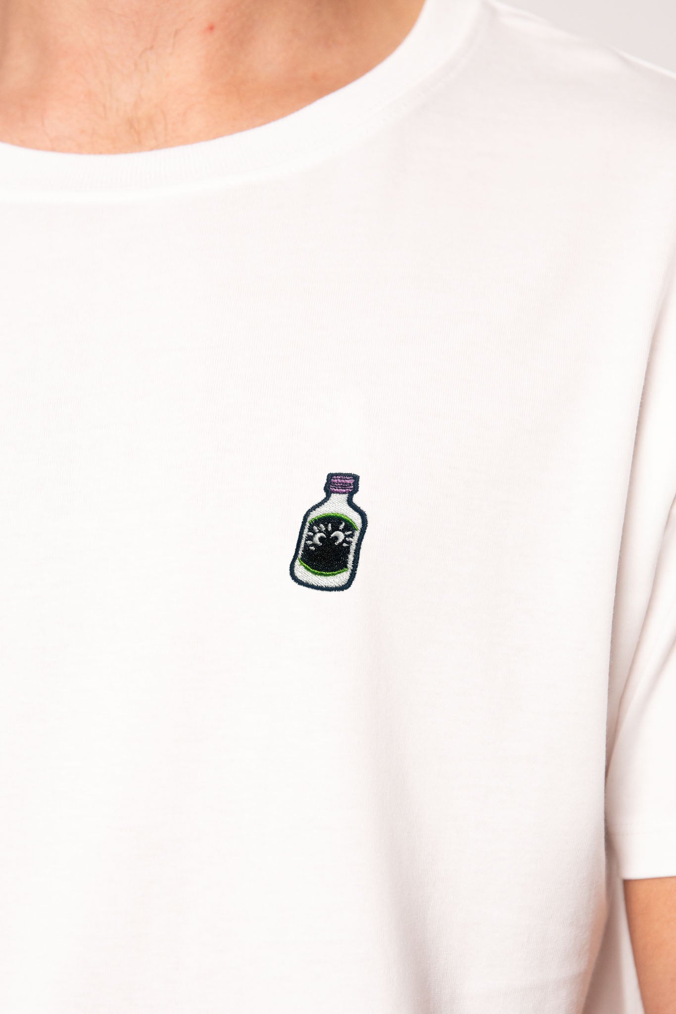 Besticktes Bio Baumwoll Unisex T-Shirt mit schwerem Stoff (190gsm) und der offiziellen gestickten Kleiner Feigling Flasche