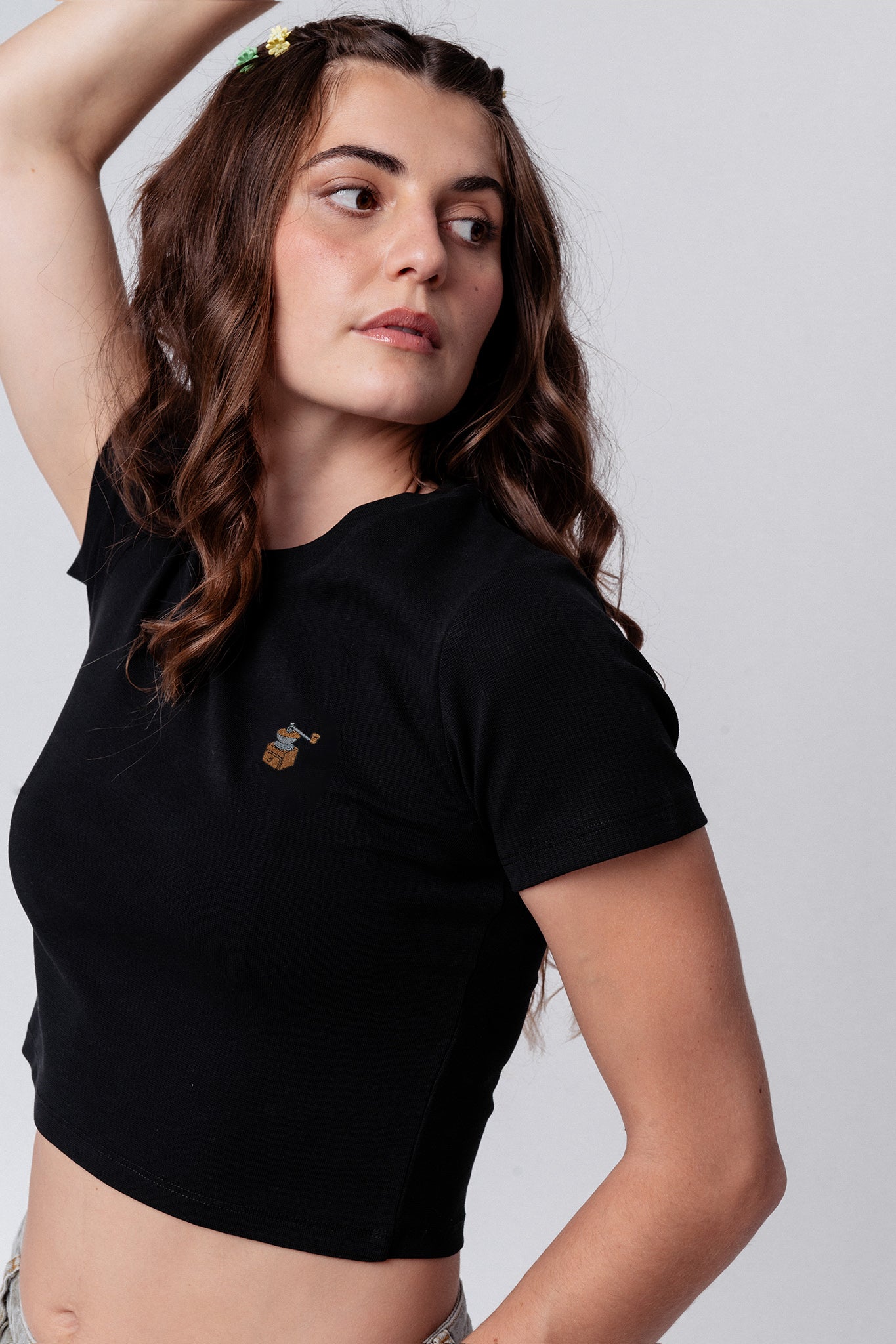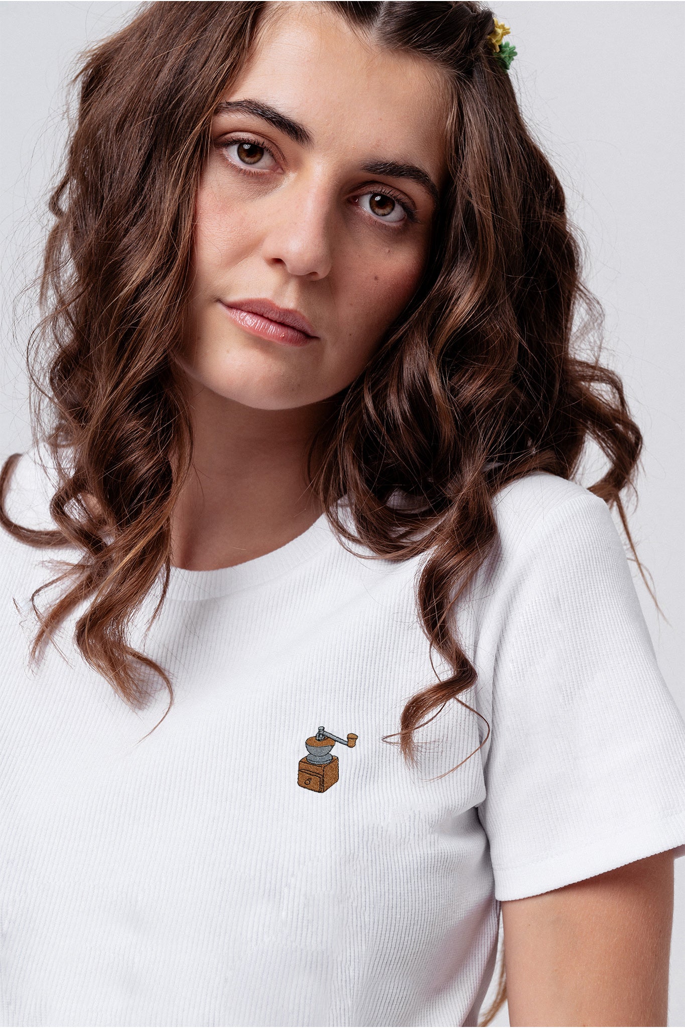 Kaffeemühle | Besticktes Bio Baumwoll Cropped T-Shirt