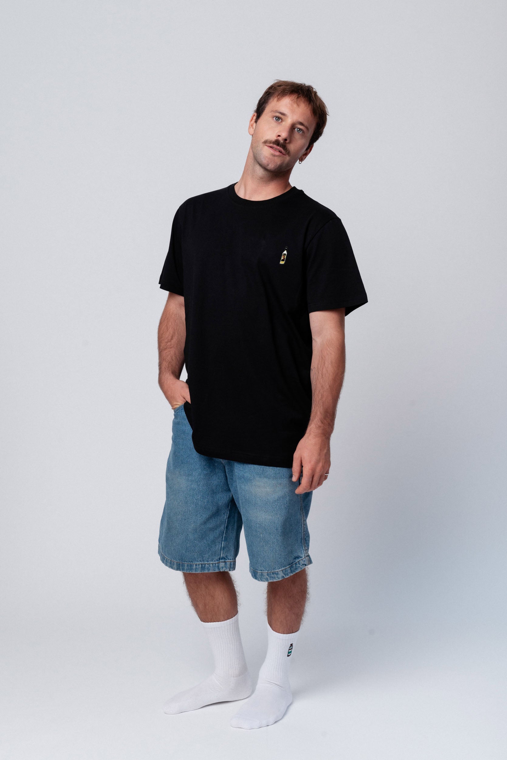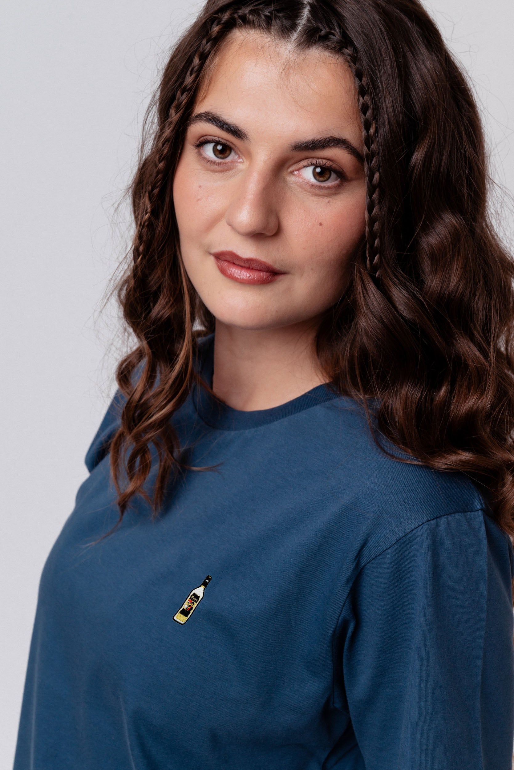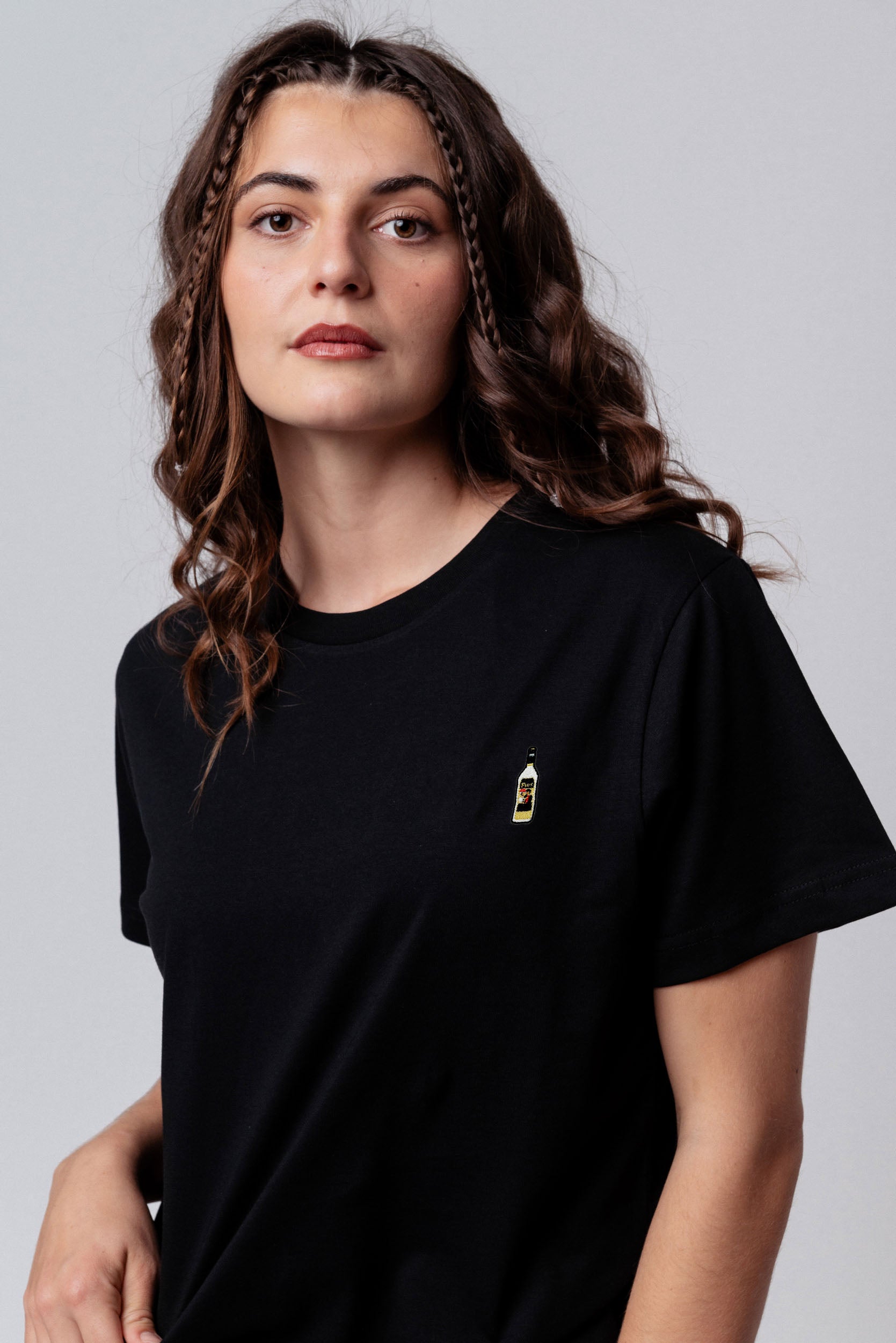 Besticktes Bio Baumwoll Unisex T-Shirt mit schwerem Stoff (190gsm) und gesticktem offiziellem Original Fies Schwarzwälder Kirschwasser Design