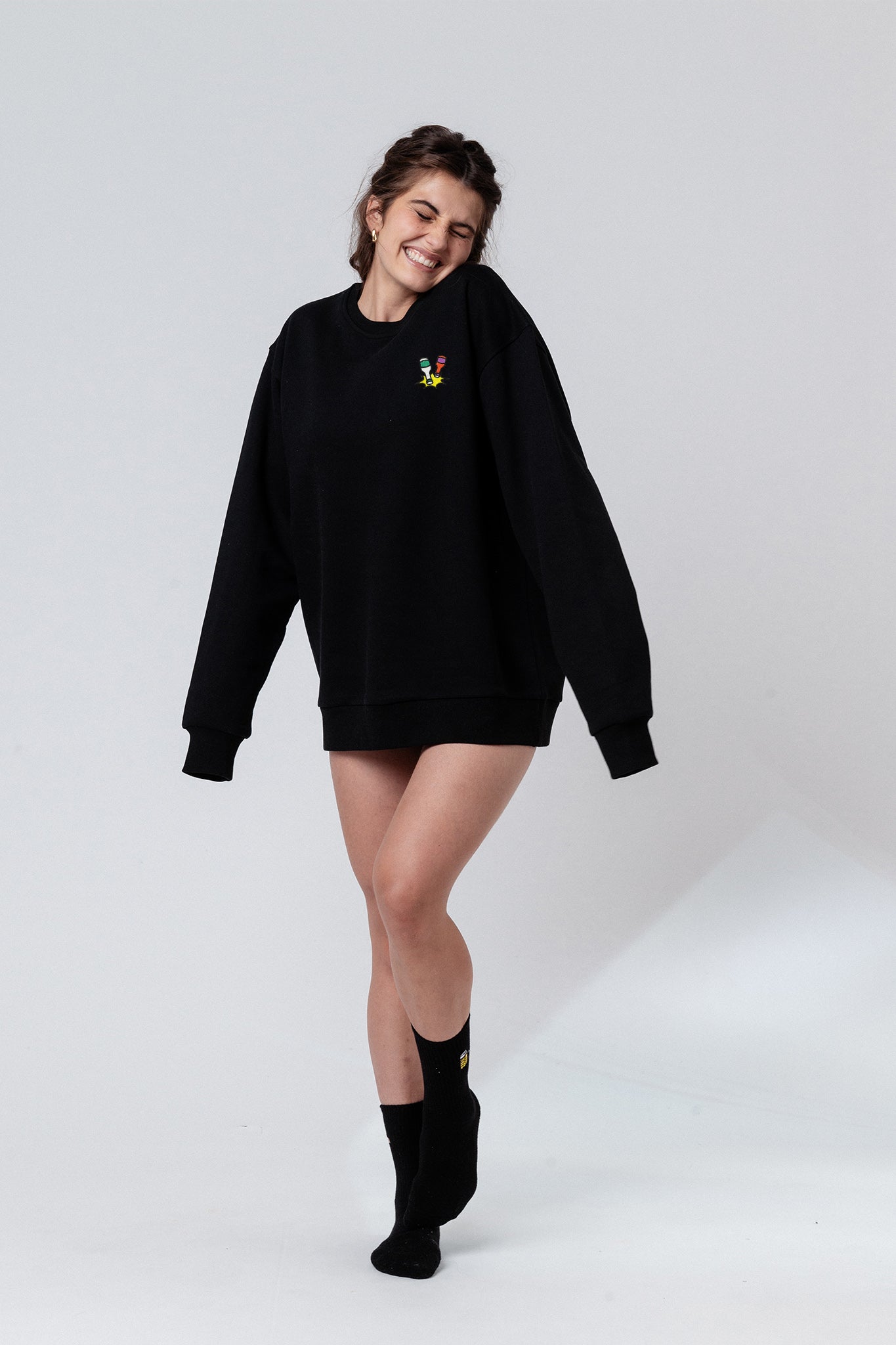 Bestickter Bio Baumwoll Unisex Pullover mit schwerem Stoff (320gsm) und dem offiziellen gestickten Kleiner Klopfer® Flasche
